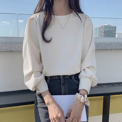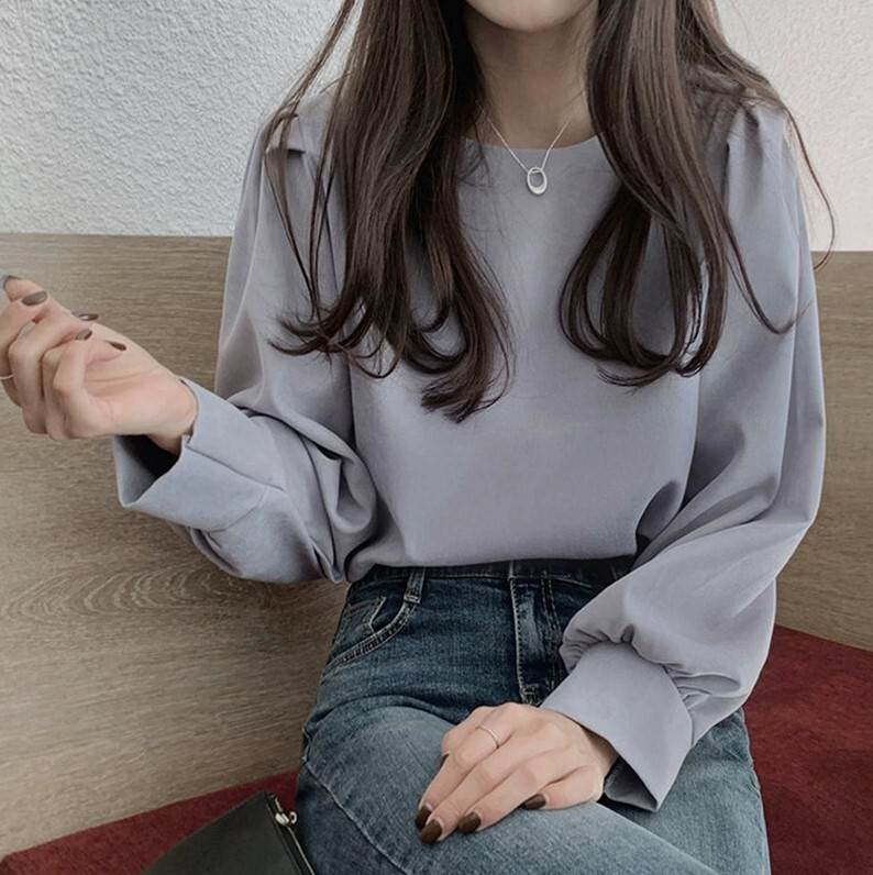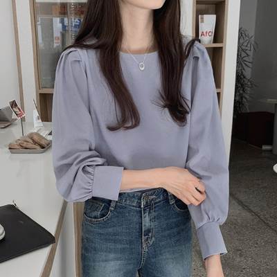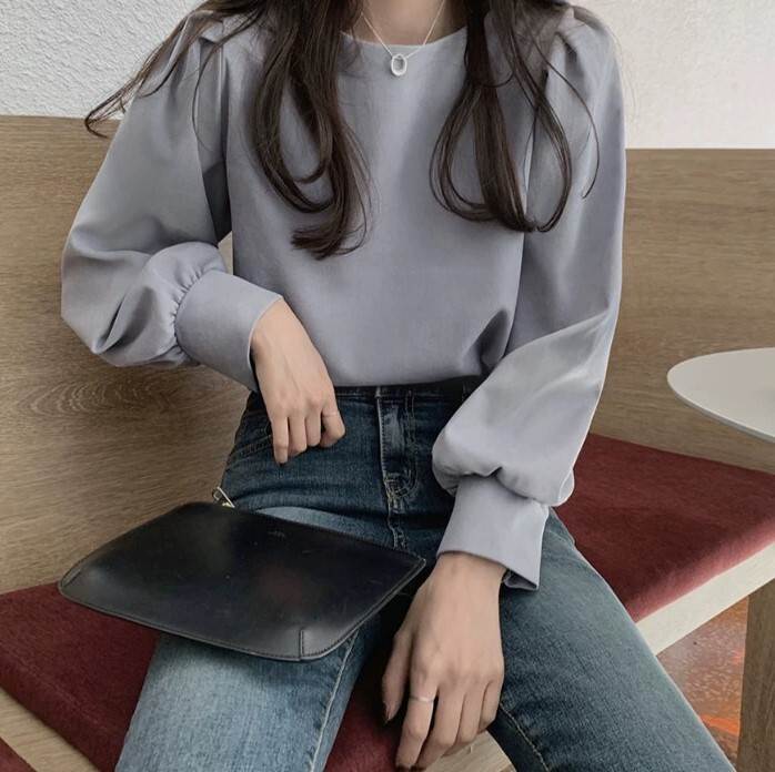 トップス ブラウス パフスリーブ オフィスカジュアル 袖あり 長袖 ボートネック 襟なし 伸縮性 薄手 かわいい 可愛い きれいめ シンプル 大人 上品 おしゃれ お洒落 大人可愛い 大人女子 こなれ感 ラブリー キュート クール エレガント 抜け感 無地 春 秋 10代 20代 30代 40代 50代 60代 レディース 女性用 オフィス ビジネス OL 通勤 デート お出かけ 休日 レストラン 着回し 普段使い モテ トレンド 流行 S M L 白 ホワイト 青 ブルー 水色 清楚 やわらか