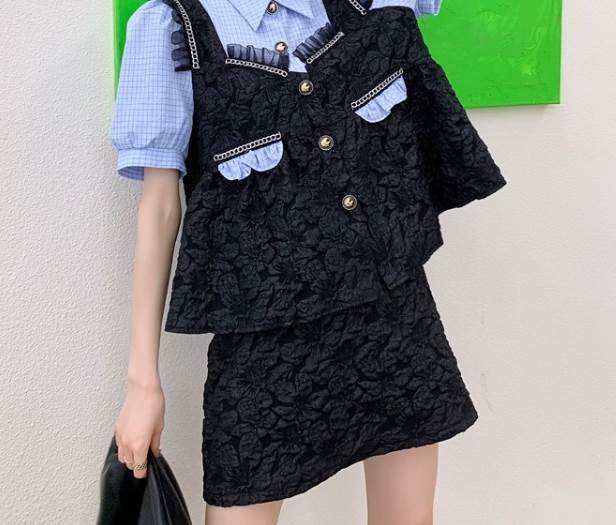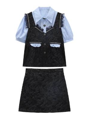 2点セット セットアップ トップス ボトムス シャツ 半袖 角襟 重ね着風 ミニスカート タイトスカート Aライン かわいい 大人可愛い きれいめ シンプル カジュアル 大人 上品 おしゃれ かっこいい 大人女子 こなれ感 ラフ キュート 個性的 主役級 存在感 無地 チェック柄 10代 20代 レディース 女性用 学生 通学 デート お出かけ 女子会 お泊まり 休日 リゾート 旅行 リゾート ホテル ショッピング レストランS M 着回し 普段使い 脚長 美脚 ファッション コーデ スタイル モテ
