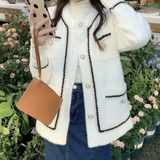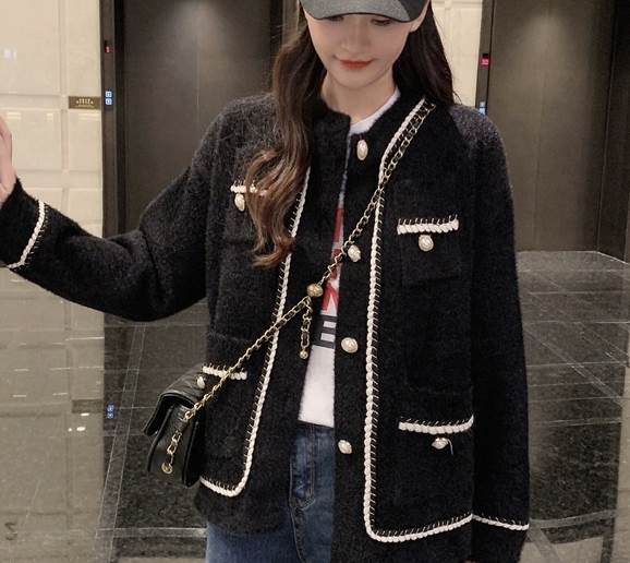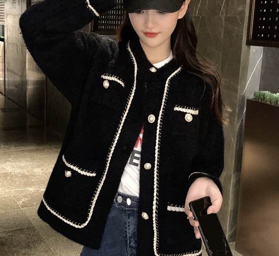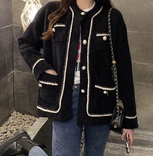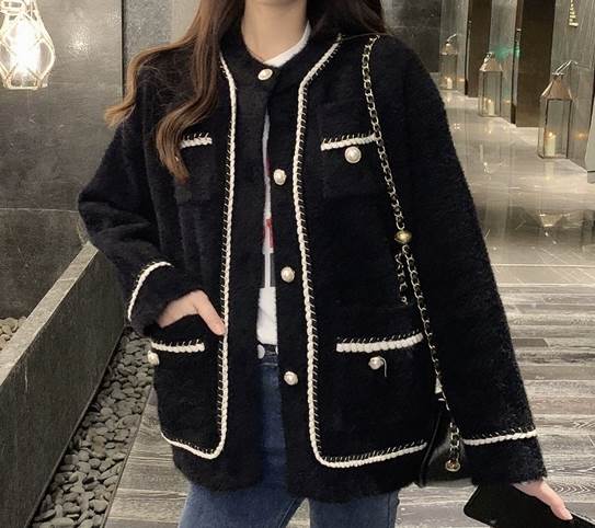 レディースの秋冬アウターにおすすめの一枚、ラウンドネックのジャケットです。