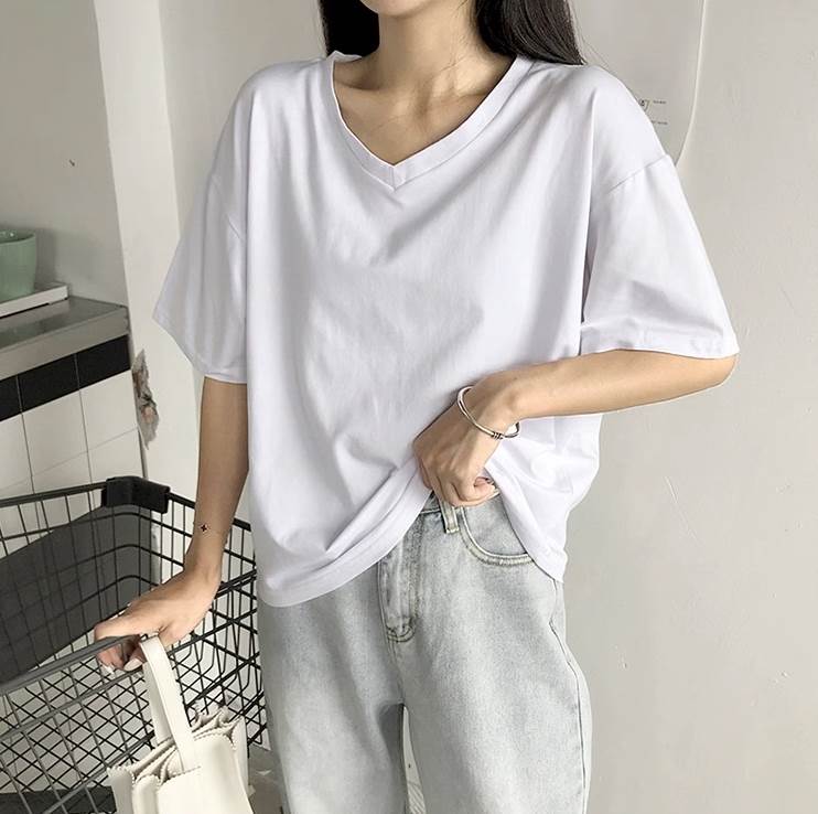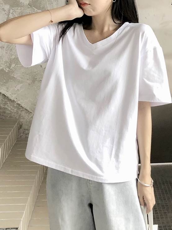 レディース トップス Tシャツ 半袖 5分袖 Vネック 襟なし ストレート Iライン ストリート 綿 ポリウレタン かわいい 大人可愛い きれいめ シンプル カジュアル 上品 おしゃれ かっこいい こなれ感 ラフ メンズライク ボーイッシュ スポーティー ルーズ 都会的 無地 春 夏 秋 OL 通勤 学生 学校 通学 旅行 海 公園 韓国 オルチャン コーデ 楽ちん 体型カバー 普段使い 着回し 清楚 定番 S M L XL 2XL 小さいサイズ 大きいサイズ ゆったり 白 ホワイト 黒 ブラック