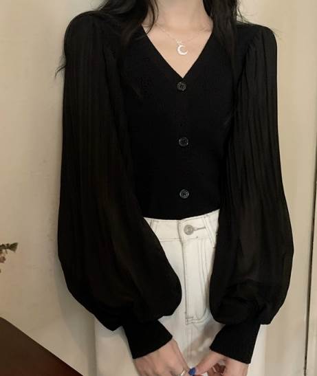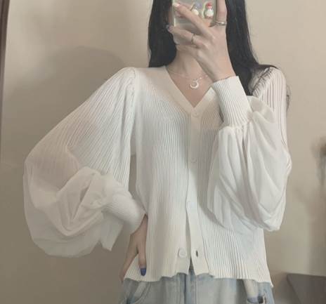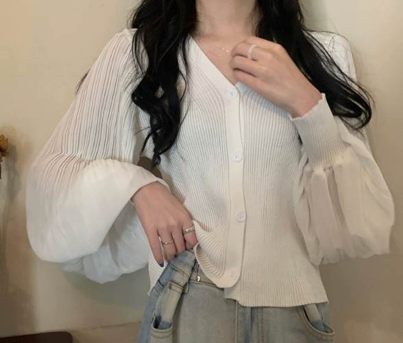 レディース トップス カーディガン ショート 長袖 ボリューム袖 ランタンスリーブ Vネック 前開き 細身 ニット 大人可愛い きれいめ シンプル カジュアル おしゃれ ラフ ガーリー ルーズ エレガント 抜け感 キュート シック 無地 春 秋 10代 20代 デート お出かけ イベント 旅行 レストラン 女子会 休日 ショッピング コンサート ライブ お花見 カフェ 散歩 食べ歩き テーマパーク 遊園地 重ね着 普段使い 着回し モテ S M L 白 ホワイト 黒 ブラック アプリコット