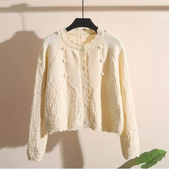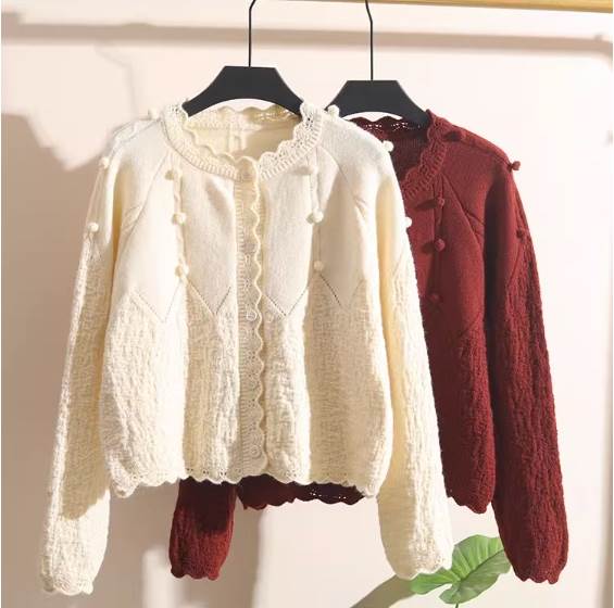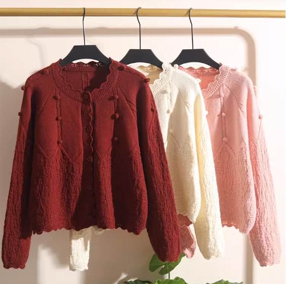 トップス カーディガン ショート丈 長袖 ラウンドネック ニット かわいい お洒落 キュート ガーリー 無地 春 秋 冬 10代 20代 30代 白 赤 レディース ボタン 学生 通学 デート 前開き