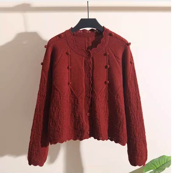 トップス カーディガン ショート丈 長袖 ラウンドネック ニット かわいい お洒落 大人女子 キュート ガーリー 無地 春 秋 冬 10代 20代 30代 女性用 ママ 学生 デート お出かけ 公園デビュー 休日 ホテル レストラン ショッピング 普段使い 韓国系 暖かい モテ フリーサイズ ワンサイズ レッド ピンク