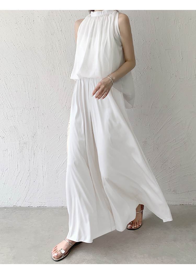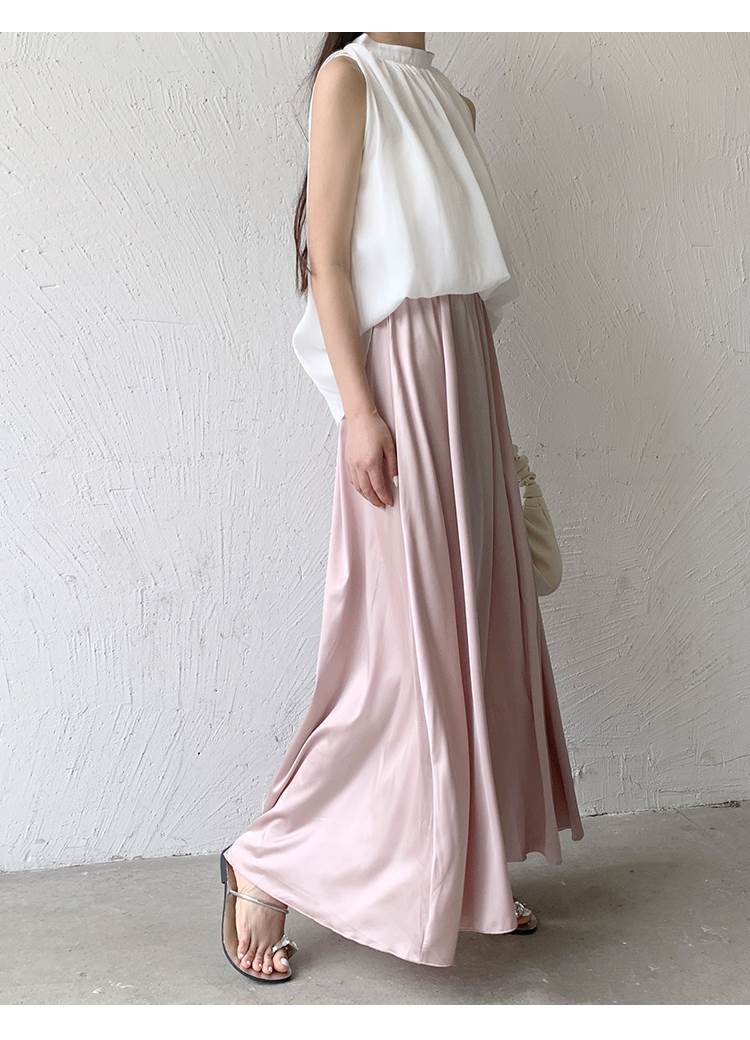 パンツ スカート風 ワイドパンツ ガウ レディースファッション 続々登場 ピンク ホワイト ブラック グレー S M L XL