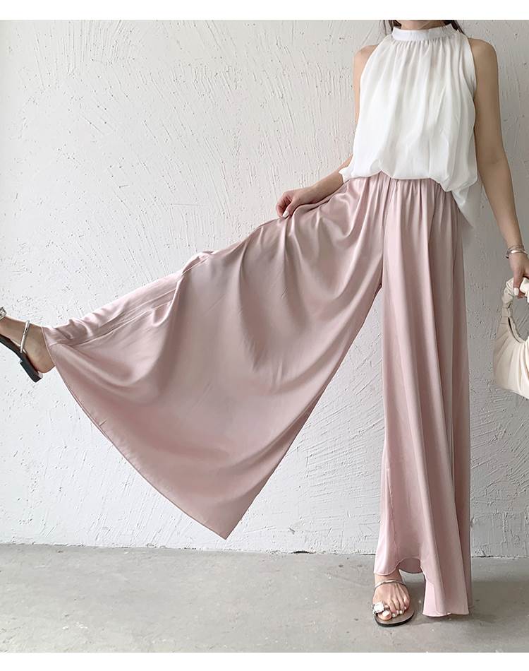 パンツ スカート風 ワイドパンツ ガウチョ サテン きれいめ 大人 かわいい ドレープ ボトムス ズボン ワイドパンツ ロング丈 マキシ丈 フレア ワイド ガウチョ Aライン ハイウエスト 薄手 可愛い シンプル カジュアル 上品 おしゃれ お洒落 かっこいい 大人可愛い 大人女子 こなれ感 ラフ キュート ガーリー とろみ感 無地 春 夏 秋 10代 20代 30代 40代 レディース 女性用 ママ 学生 通学 デート お出かけ 休日 リゾート 旅行 デート 着回し 普段使い スタイルアップ 楽ちん