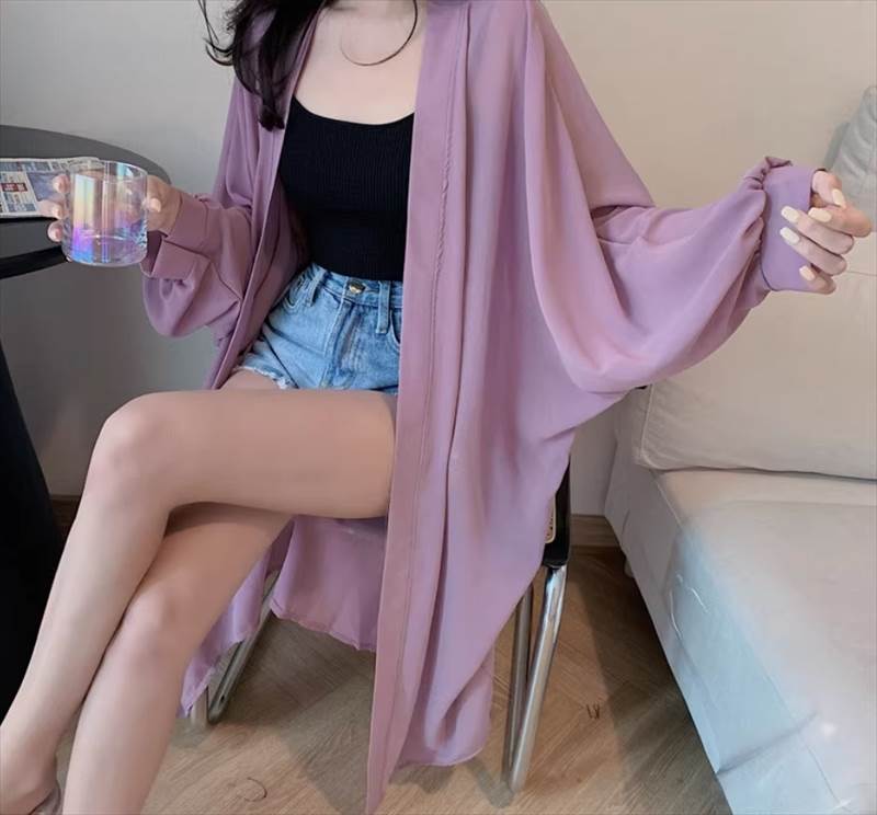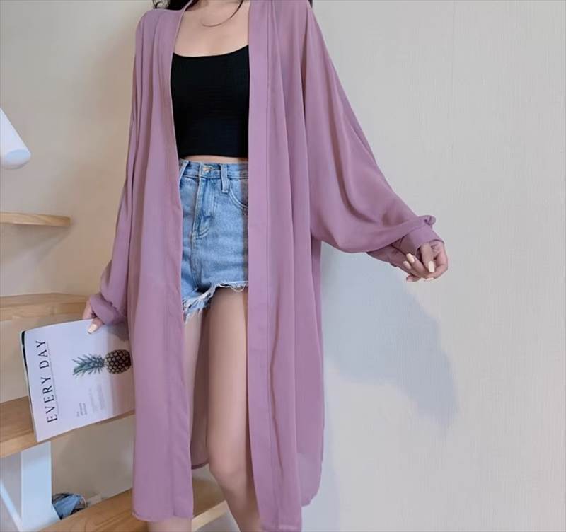 レディース トップス カーディガン 羽織 ロング お尻まですっぽり 長袖 ボリューム袖 ドルマンスリーブ 襟なし 前開き 透け感 シースルー かわいい 大人可愛い きれいめ シンプル カジュアル 上品 こなれ感 ラフ 無地 夏 デート お出かけ リゾート 休日 さらっと着れる 日焼け防止 ゆったり ゆる フリーサイズ 白 ホワイト 黒 ブラック 紫 オレンジ 水色 ライトブルー