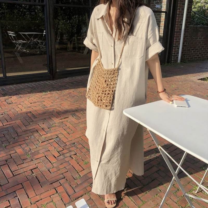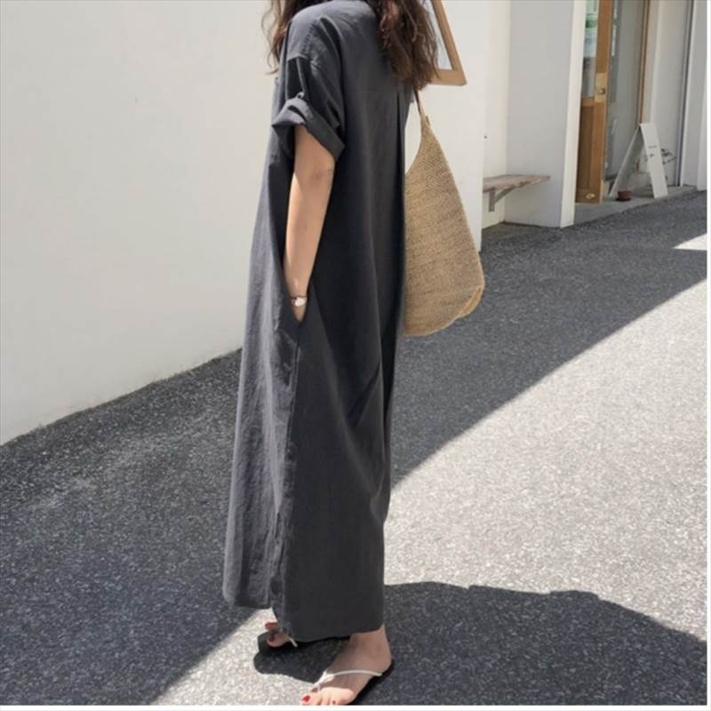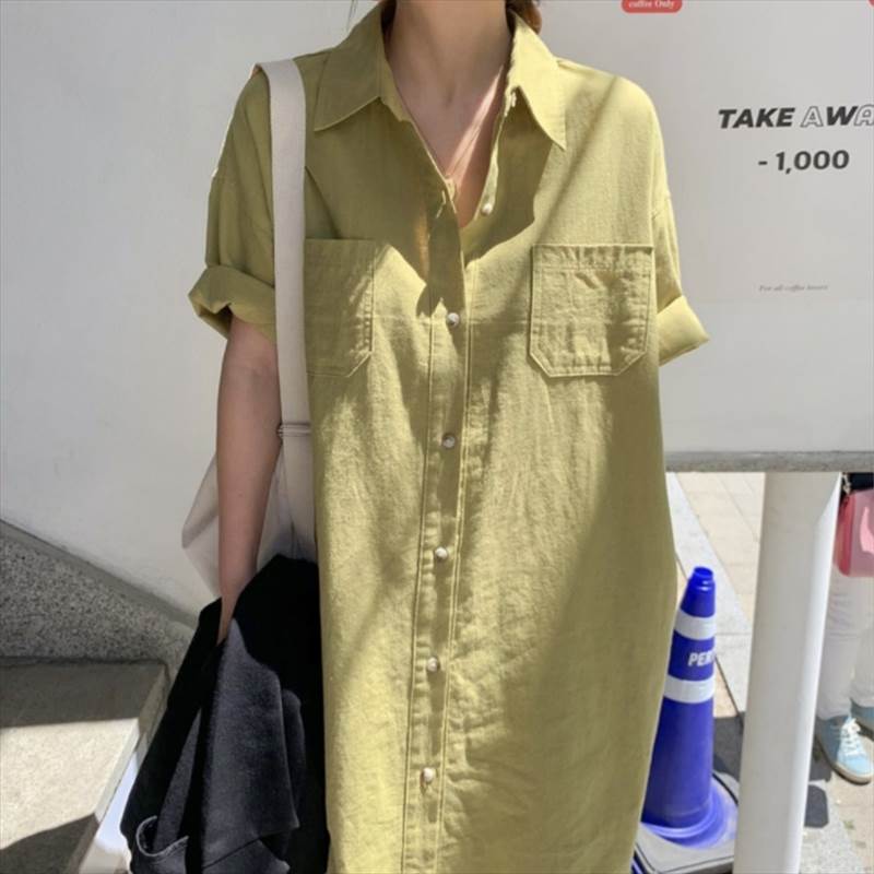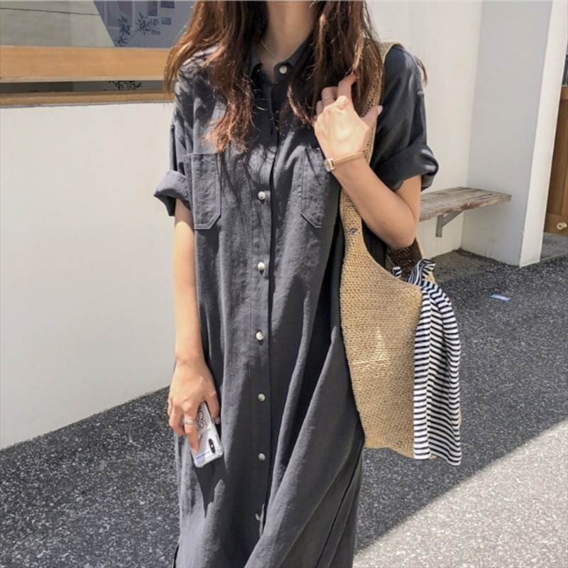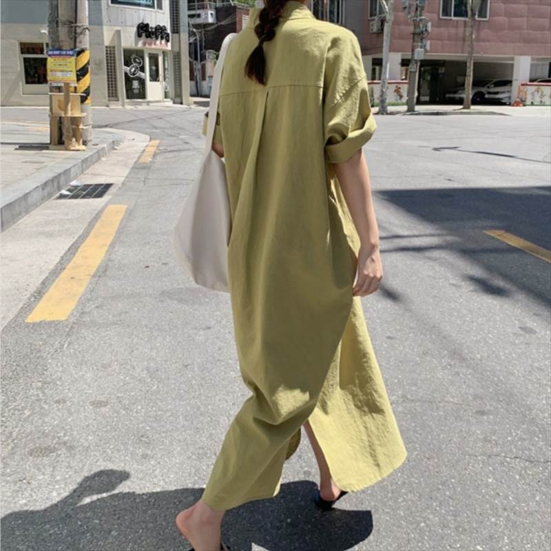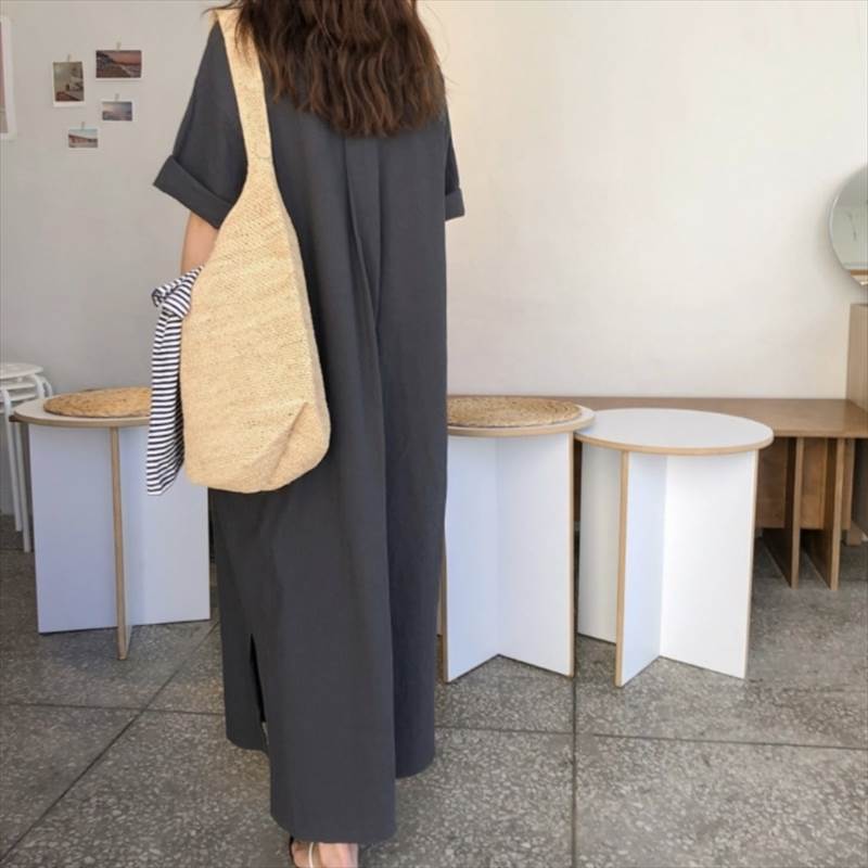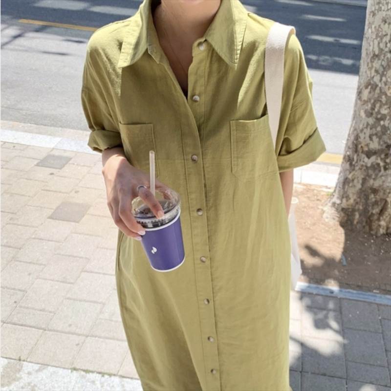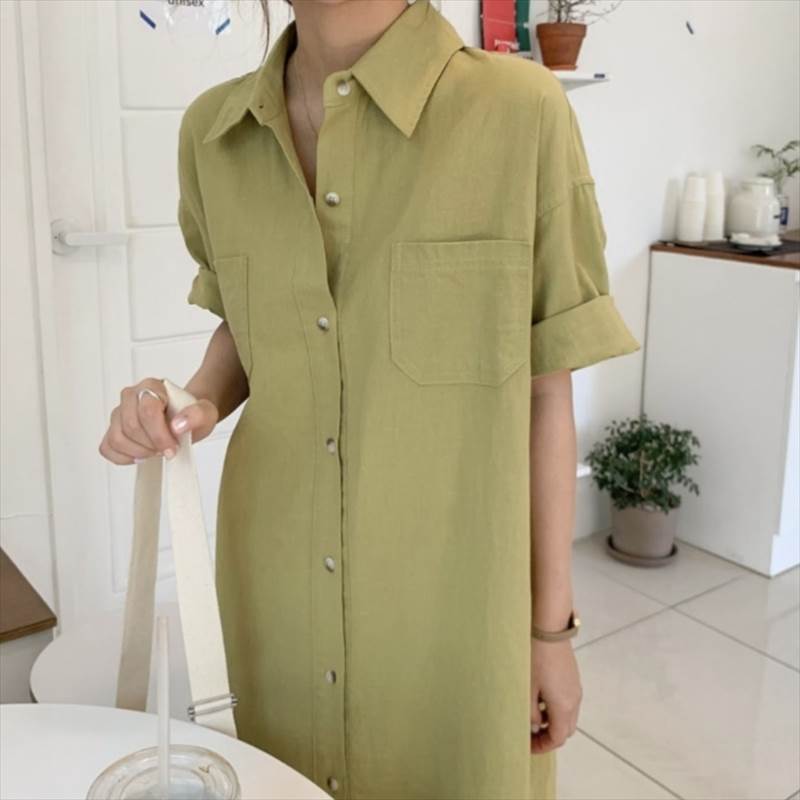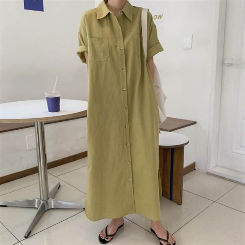 ワンピース シャツワンピース ロング丈 袖あり 半袖 襟付き ルーズ ストレート ポケット 前開き 薄手 大人可愛い きれいめ シンプル カジュアル 大人 上品 お洒落 かっこいい レトロ 大人女子 こなれ感 ラフ クール モード系 モダン 主役級 存在感 とろみ感 抜け感 無地 夏 20代 30代 40代 レディース デート お出かけ 女子会 お泊まり 休日 アウトドア 旅行 ショッピング 普段使い 韓国系 オルチャン 楽ちん 体系カバー トレンド 流行 S M L XL グリーン グレー アプリコット