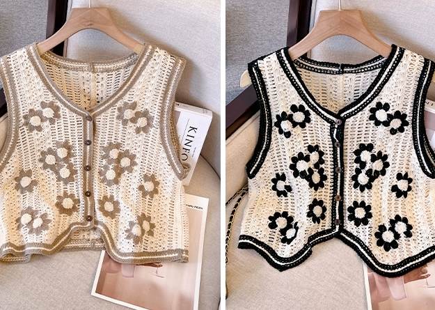 トップス ベスト ジレ 袖なし 襟なし Vネック 透かし編み 透け感 前開き ボタン かわいい 大人可愛い きれいめ シンプル 大人 上品 おしゃれ かっこいい 大人女子 レトロ こなれ感 キュート ガーリー 個性的 主役級 存在感 花柄 春 夏 10代 20代 レディース 女性用 OL 通勤 ママ 学生 通学 デート お出かけ 女子会 お泊まり 休日 リゾート 旅行 ホテル ショッピング レストラン イベント 着回し 普段使い 重ね着 M L XL 2XL 3XL 4XL ファッション コーデ