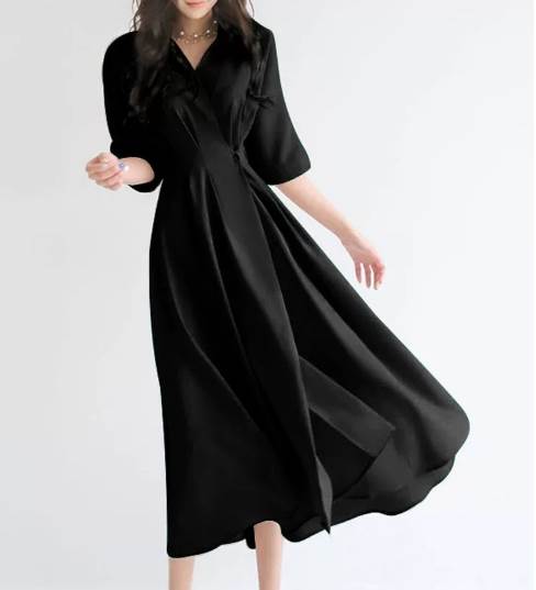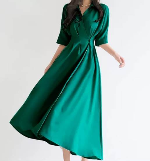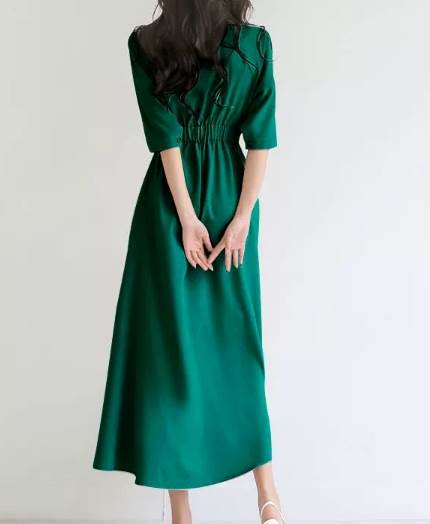 レディース ワンピース ミモレ 半袖 襟付き 角襟 フレア スリム 細身 Aライン ウエストマーク ハイウエスト 異国風 切り替えデザイン かわいい 大人可愛い きれいめ シンプル カジュアル 上品 おしゃれ エレガント キュート ナチュラル 清潔感 爽やか シック 高級感 涼しげ 知的 控えめ 優しい 無地 夏 20代 30代 40代 OL デート お出かけ 旅行 海 休日 ショッピング お祭り 花火大会 普段使い モテ 清楚 スタイルアップ効果 S M L ブラック アプリコット グリーン