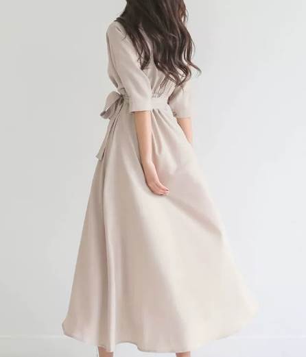 レディース ワンピース ミモレ 半袖 ワンピース 続々登場 アプリコット グリーン ブラック S M L