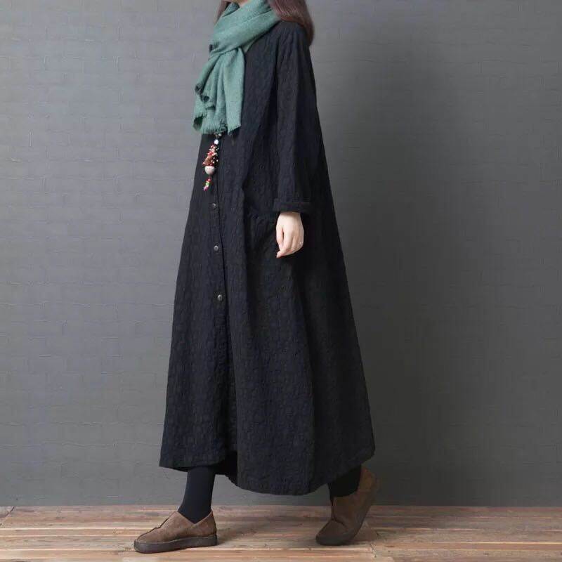 ワンピース シャツワンピース ミモレ丈 袖あり 長袖 ラウンドネック ルーズ Aライン 裾ワイド 前開き 綿 リネン コットン 大人可愛い きれいめ シンプル カジュアル 大人 上品 お洒落 かっこいい レトロ 大人女子 こなれ感 ラフ クール モード系 エレガント モダン 主役級 存在感 とろみ感 抜け感 無地 秋 冬 10代 20代 30代 40代 レディース デート お出かけ 女子会 お泊まり 休日 旅行 普段使い 韓国系 オルチャン 楽ちん モテ トレンド 流行 L XL 2XL ブラック レッド