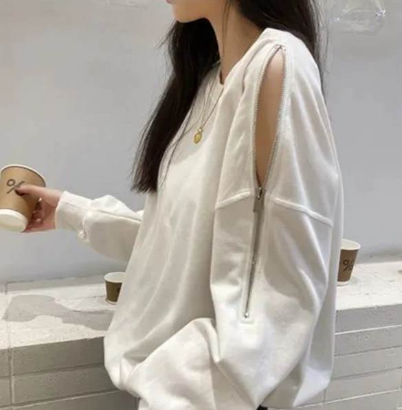 トップス トレーナー 袖あり 長袖 襟なし ラウンドネック 肩開き 肌見せ ファスナー かわいい 大人可愛い きれいめ シンプル カジュアル 大人 上品 おしゃれ かっこいい 大人女子 こなれ感 メンズライク ボーイッシュ クール 個性的 主役級 存在感 無地 秋 冬10代 20代 レディース 女性用 ママ 学生 通学 デート お出かけ 公園デビュー 女子会 お泊まり 休日 旅行 リゾート アウトドア イベント 着回し 普段使い M L XL ファッション コーデ スタイル モテ ゆったり 大きめ