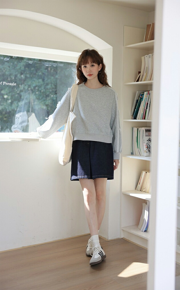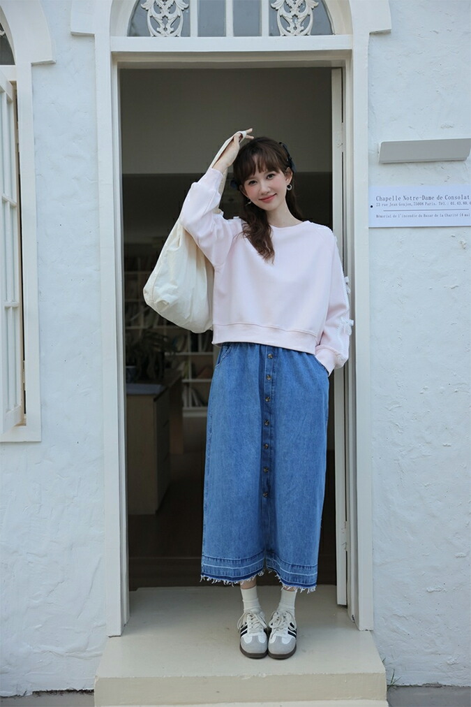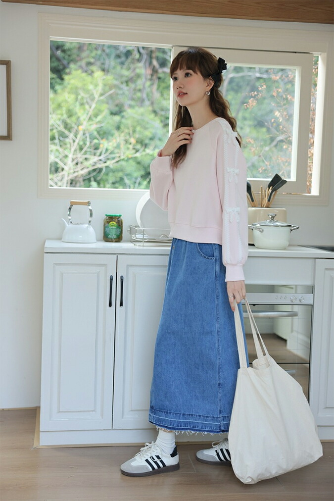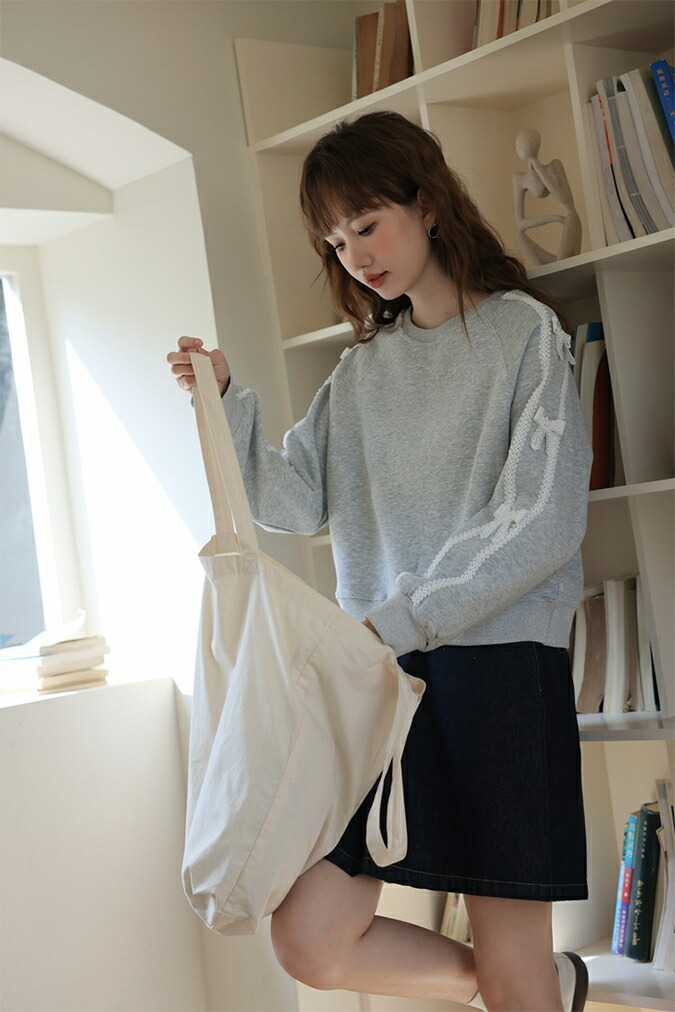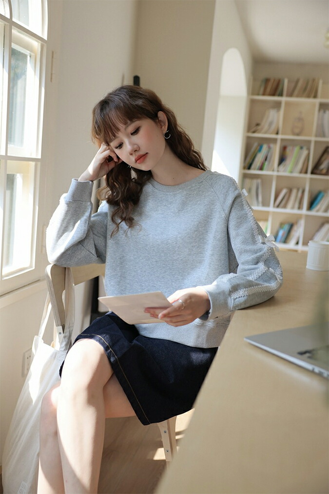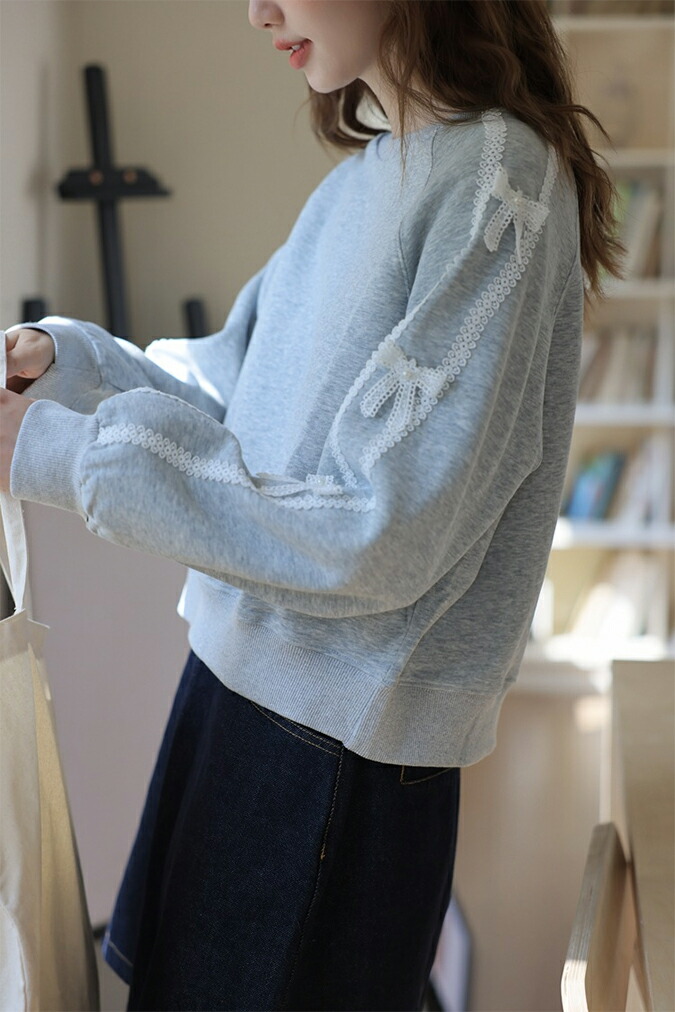 袖レースライン&リボンスウェット トレ トップス スウェット トレーナー 通販 S M L ピンク グレー