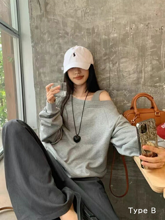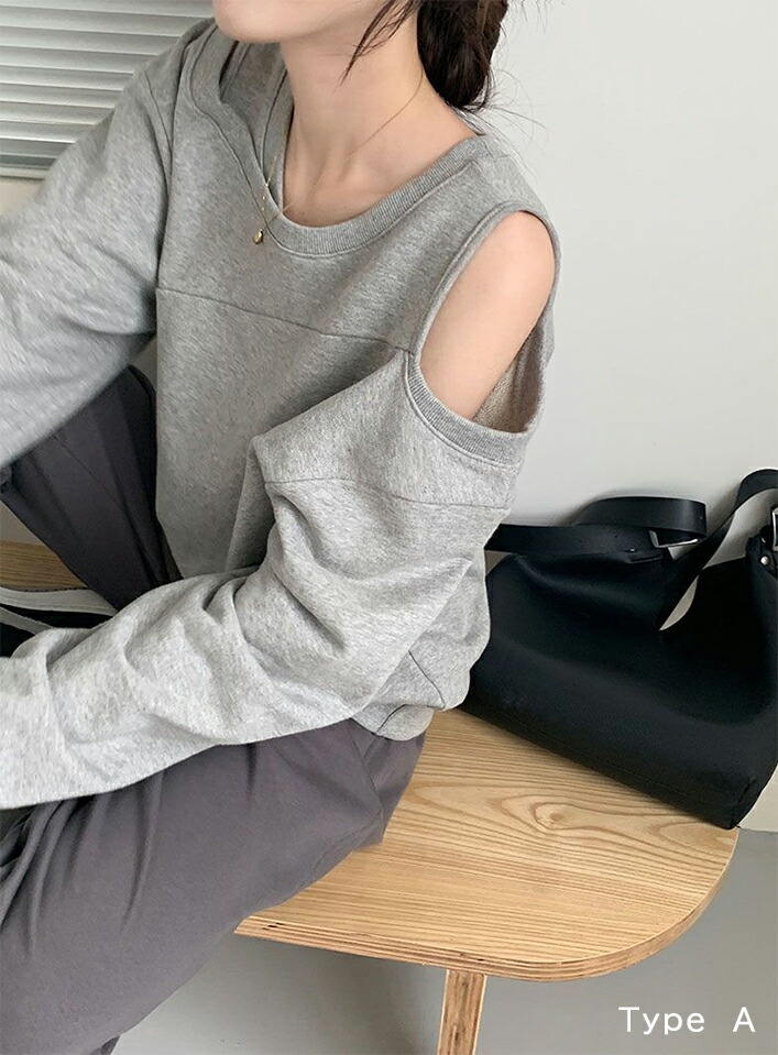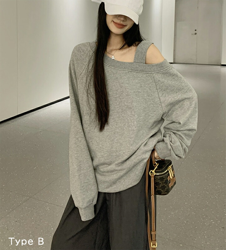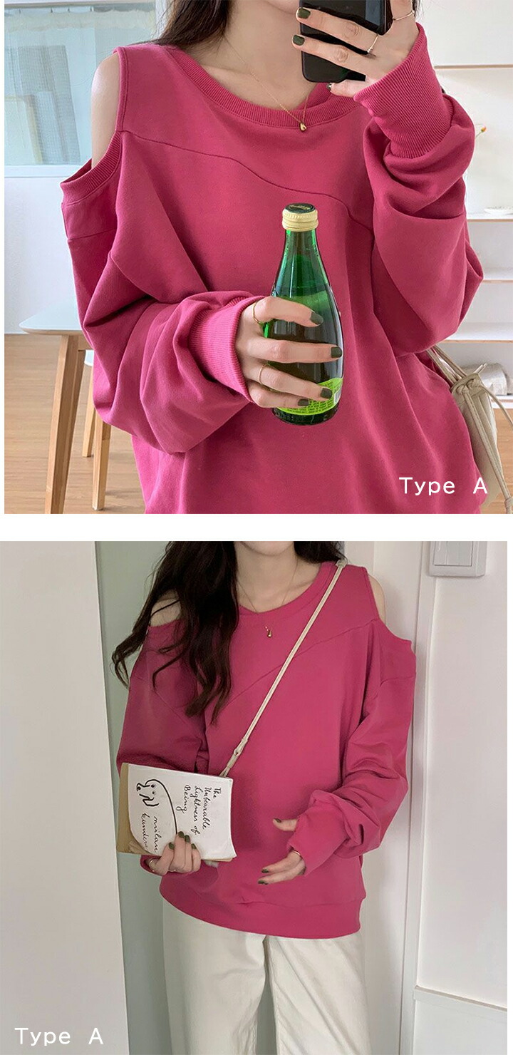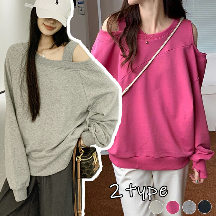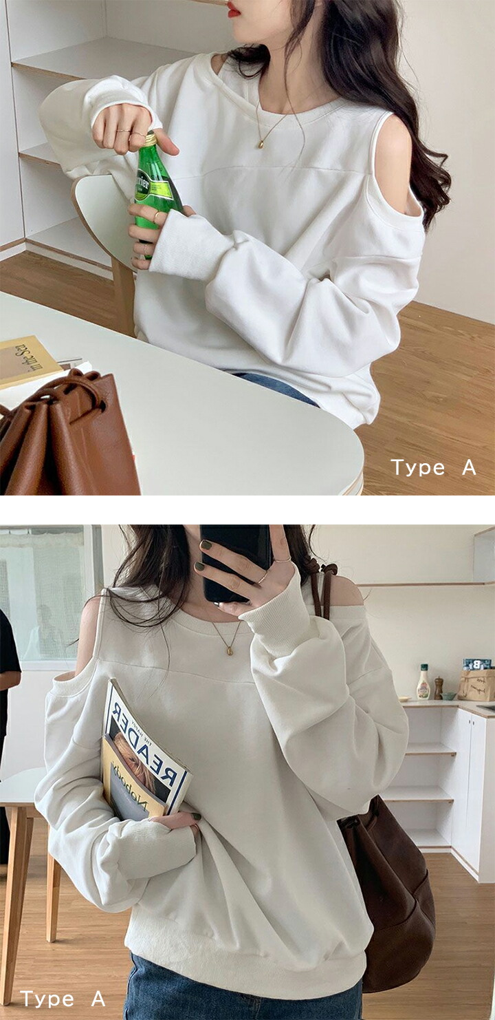肩開きトレーナー レディース 2タイプ レディースファッション 特集 M L XL Type A(ホワイト) Type A(ピンク) Type A(グレー) Type A(ブラック) Type B(グレー) Type B(ブラック)