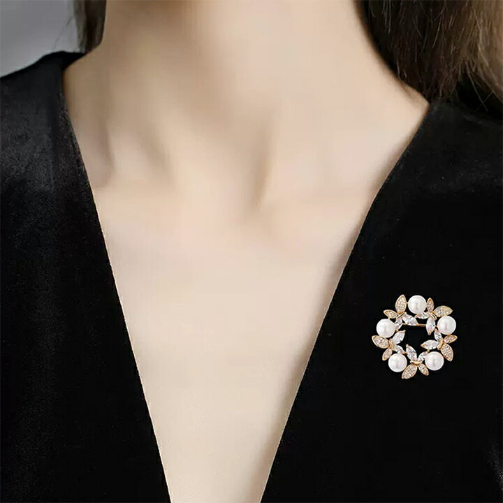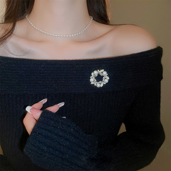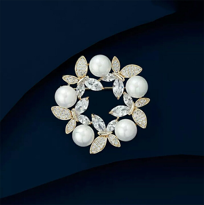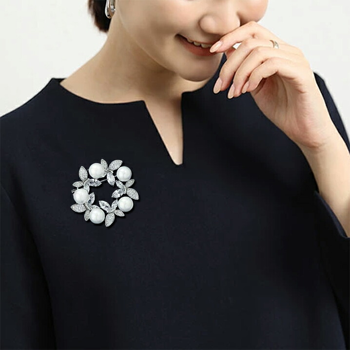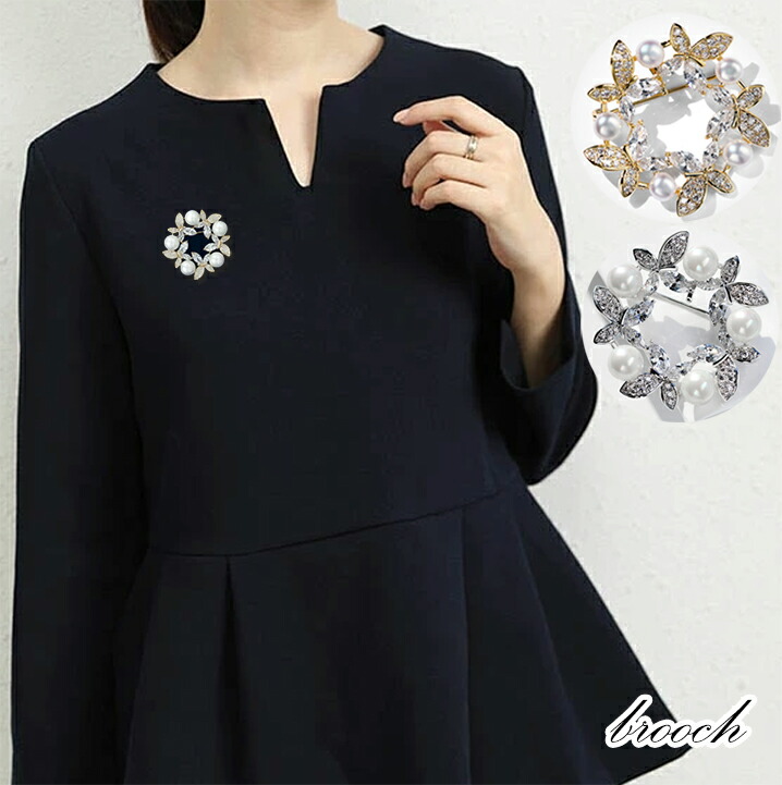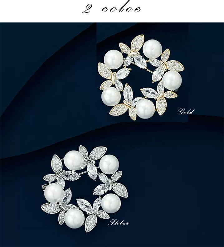 F-10 2色 ブローチ リーフパール ジュエリー アクセサリー 人気 ゴールド シルバー
