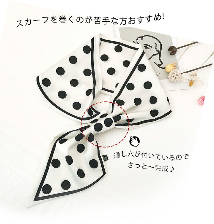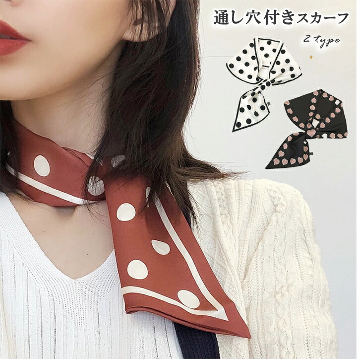 スカーフ レディース ア 通し穴付き マフラー スカーフ レディーススカーフ 割引 ドット柄 ハート柄 ホワイト ブラック ベージュ グリーン キャメル ワイン ブルー