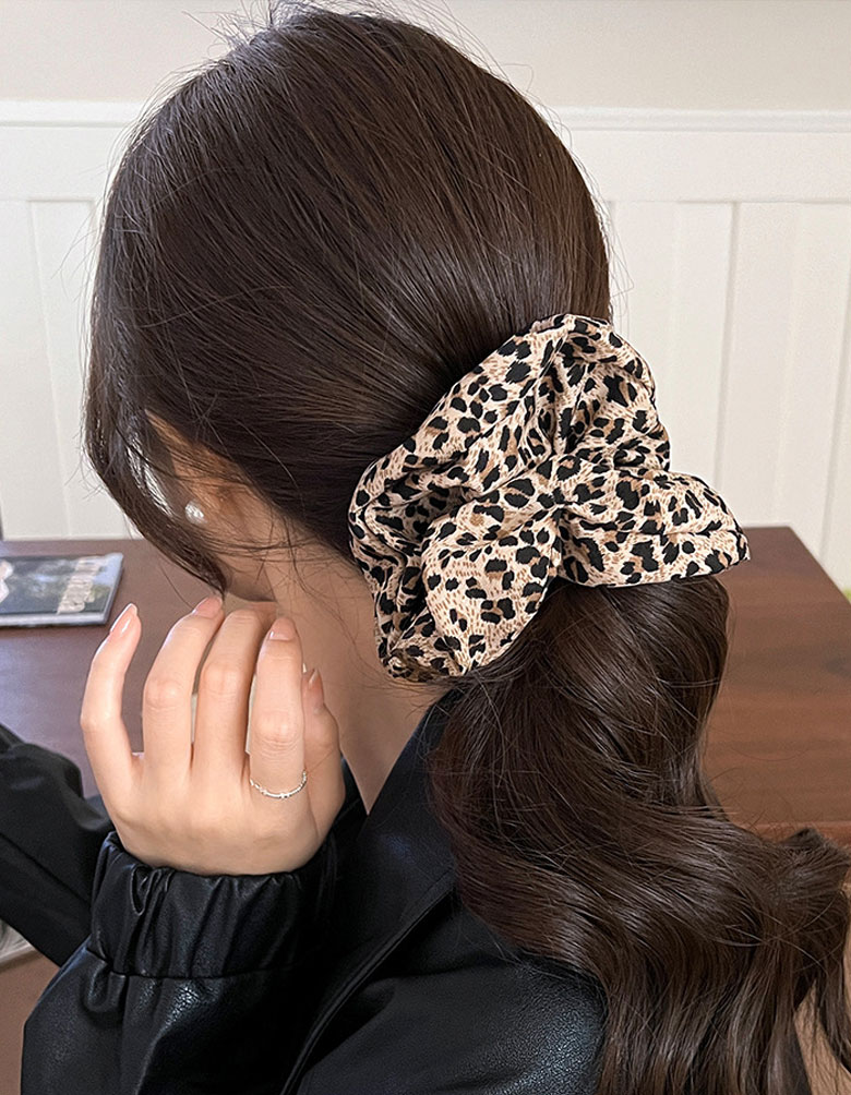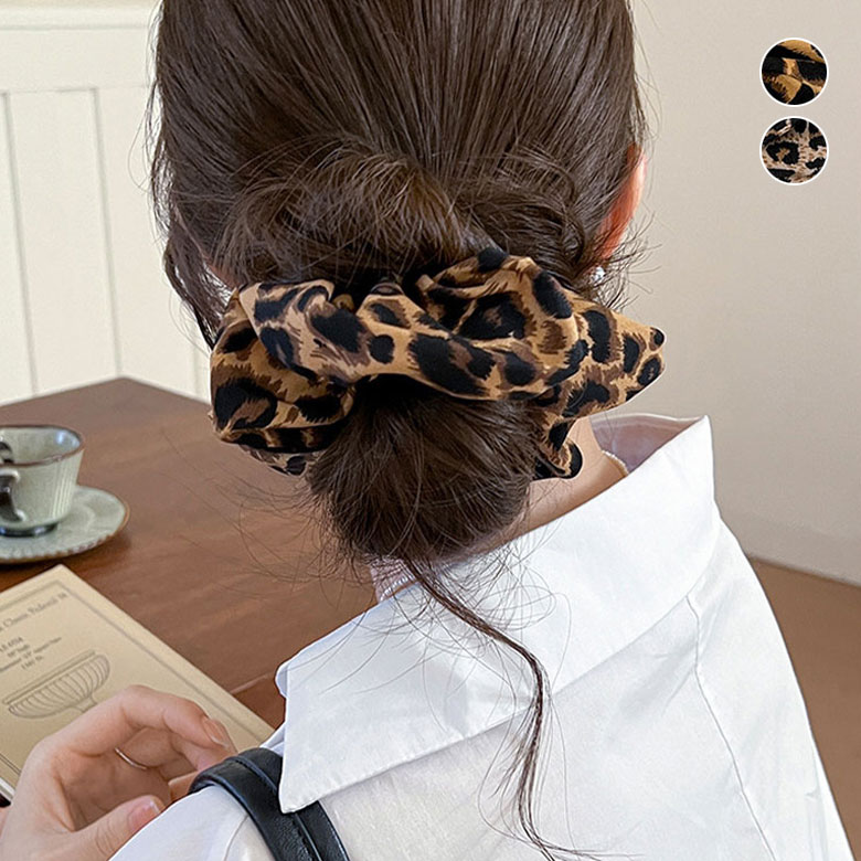 RU-5 ヒョウ柄 シュシュ ヘアアク レディースジュエリー アクセサリー ヘアアクセサリー シュシュ お得なセール ダークブラウン ブラウン