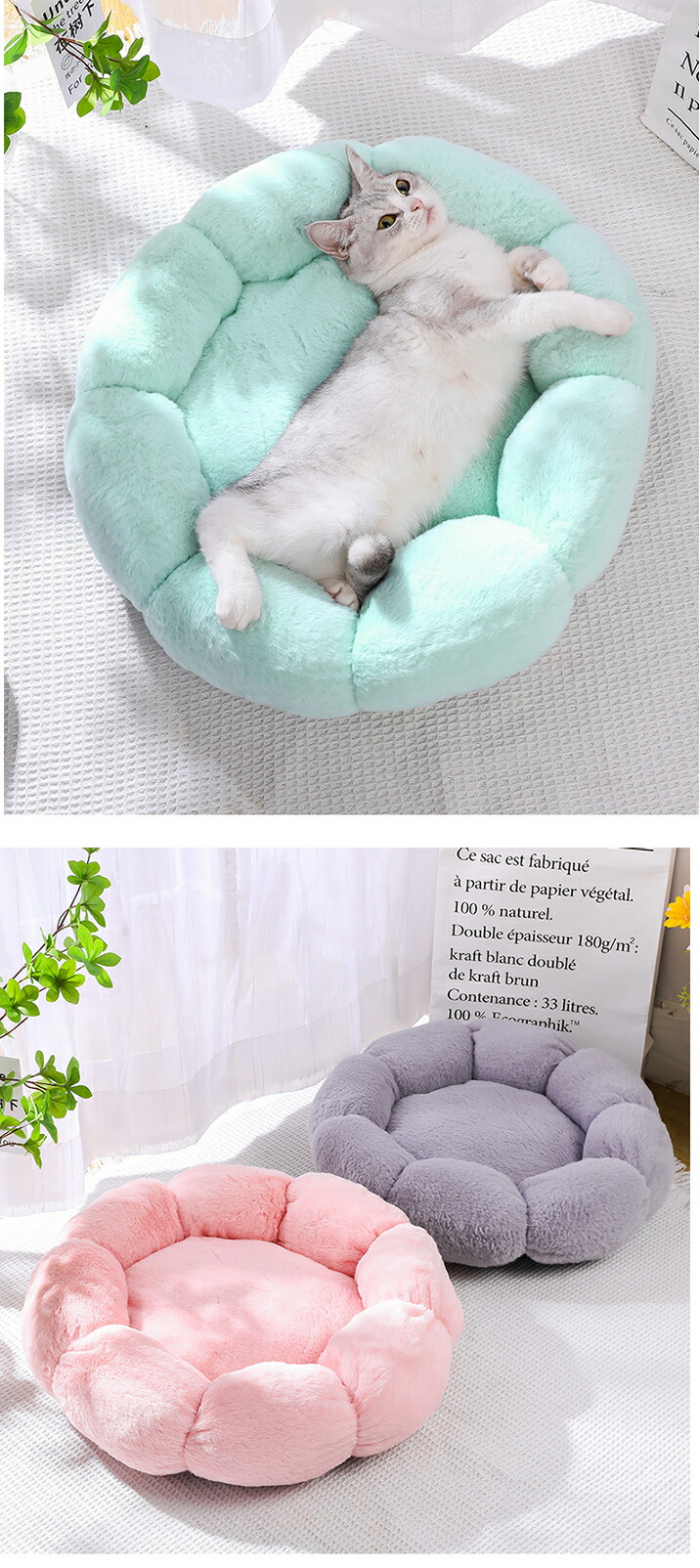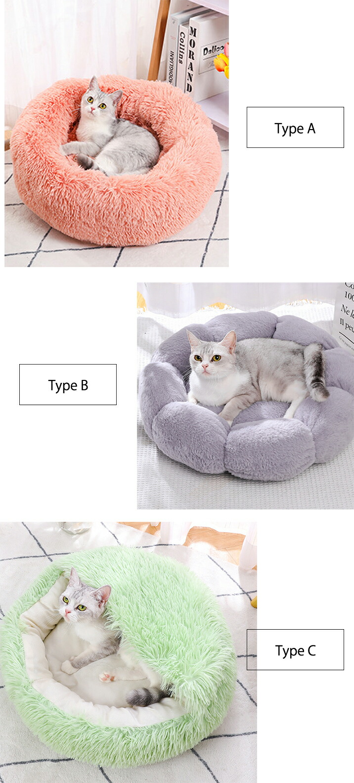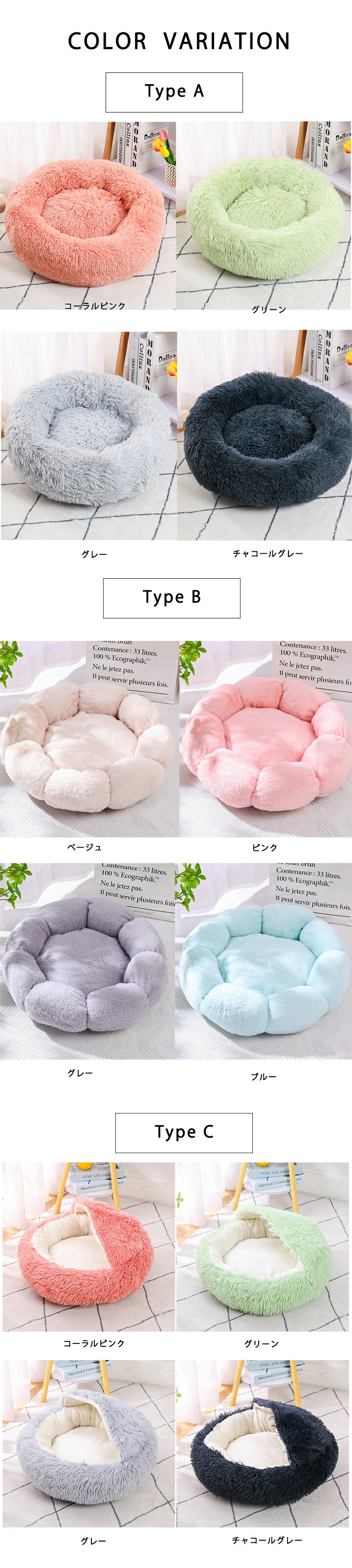 3A35 ふわふわペットベッド 猫用品 直径40cm 直径50cm 直径60cm Type A(コーラルピンク) Type A(グリーン) Type A(グレー) Type A(チャコールグレー) Type B(ベージュ) Type B(ピンク) Type B(グレー) Type B(ブルー) Type C(コーラルピンク) Type C(グリーン) Type C(グレー) Type C(チャコールグレー)