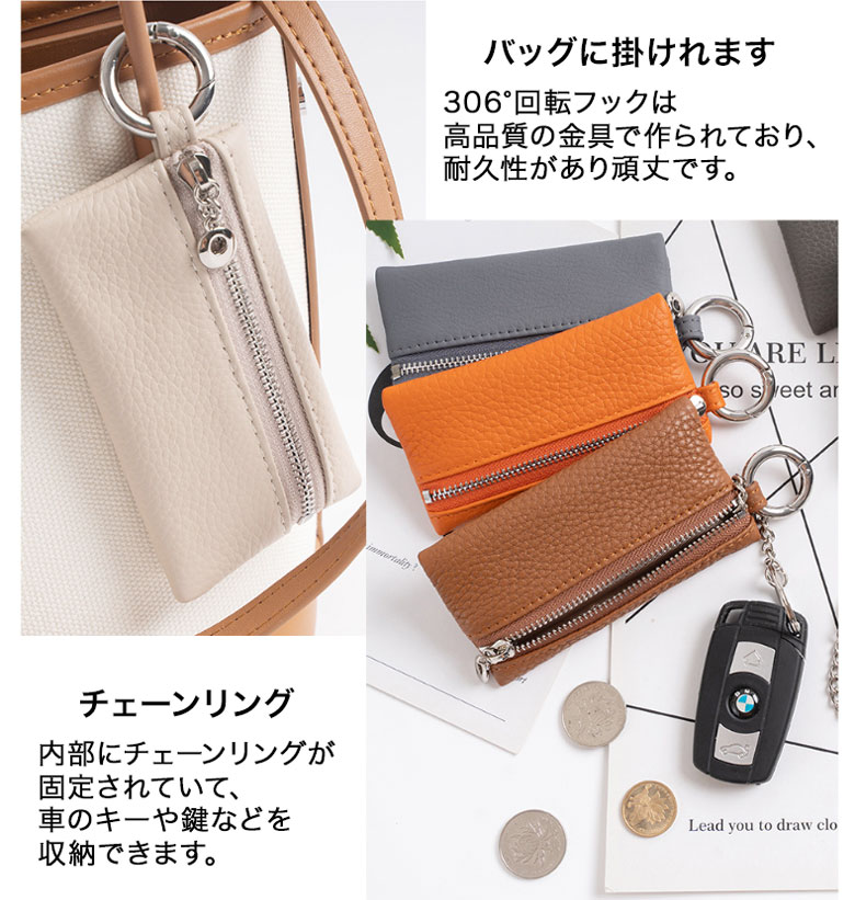 本革 キーケース レディース メンズ ブラック オレンジ ライトグレー グレー ダークグレー ブラウン ベージュ