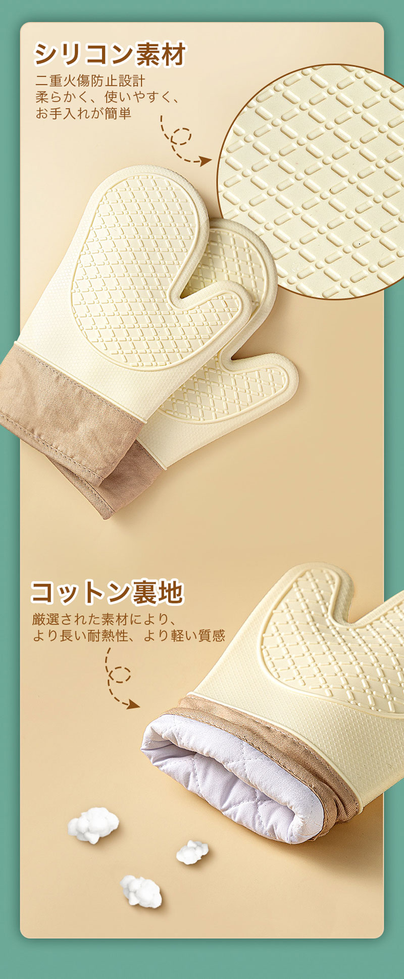 耐熱ミトン ミトン 鍋つかみ 耐熱 3 キッチン用品 食器 調理器具 お買い得 ベージュ グレー