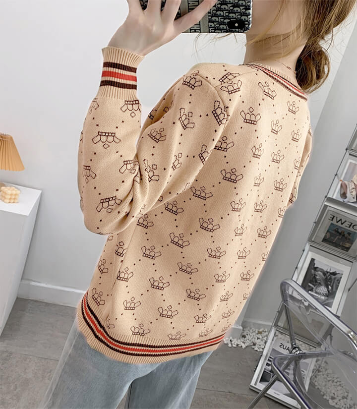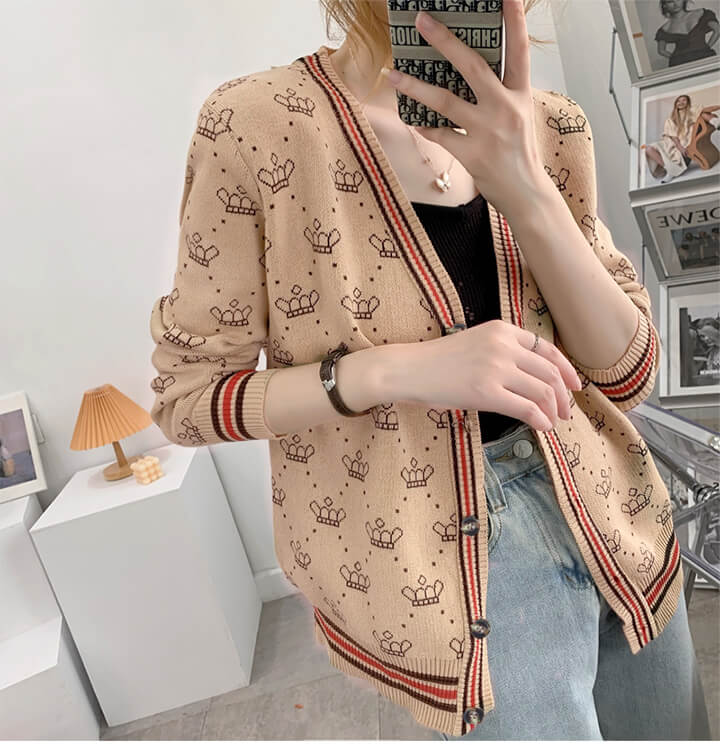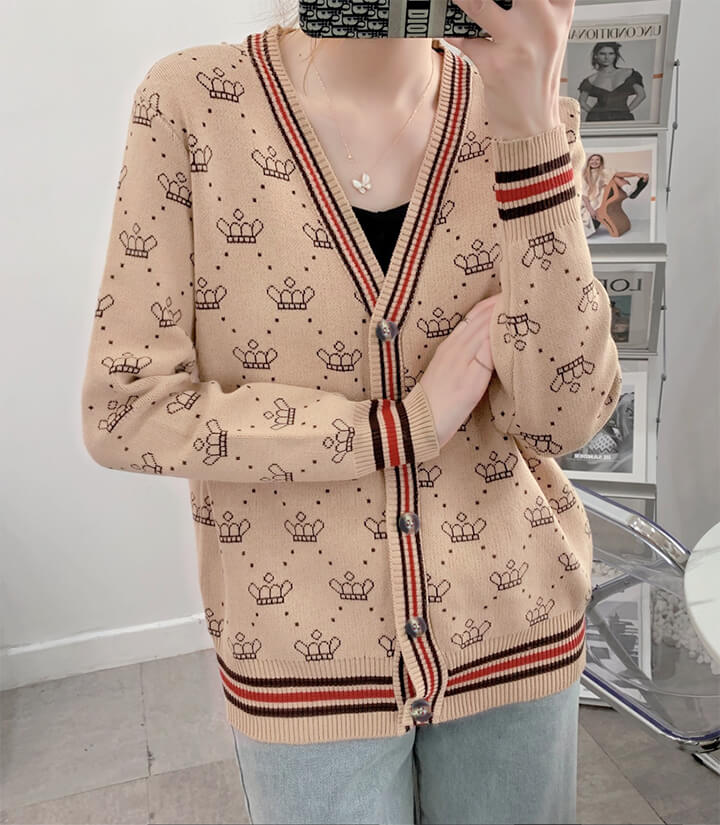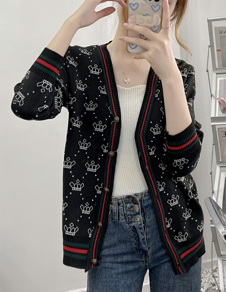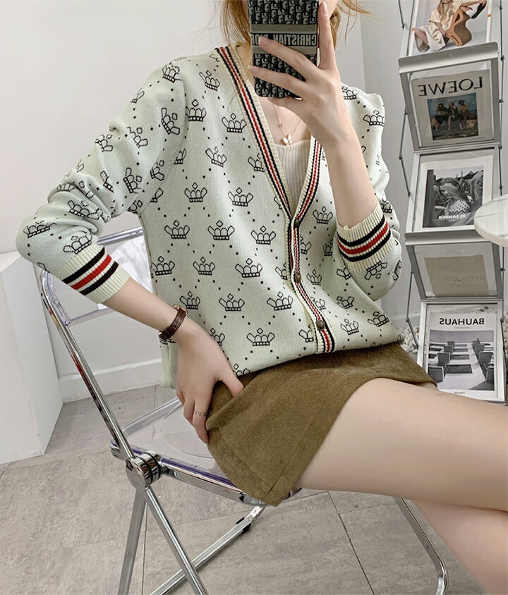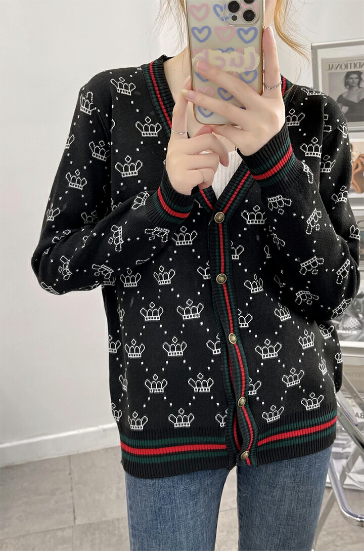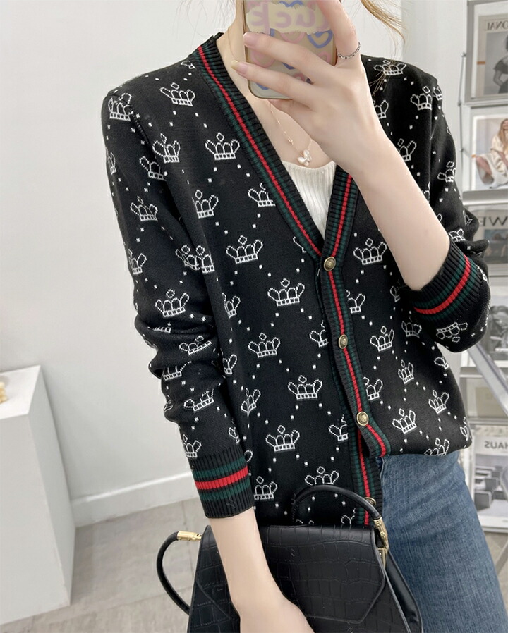 3B25 クラウン柄 ニットカーディガ トップス カーディガン ボレロ 新作 アイボリー ブラウン レッド ブラック