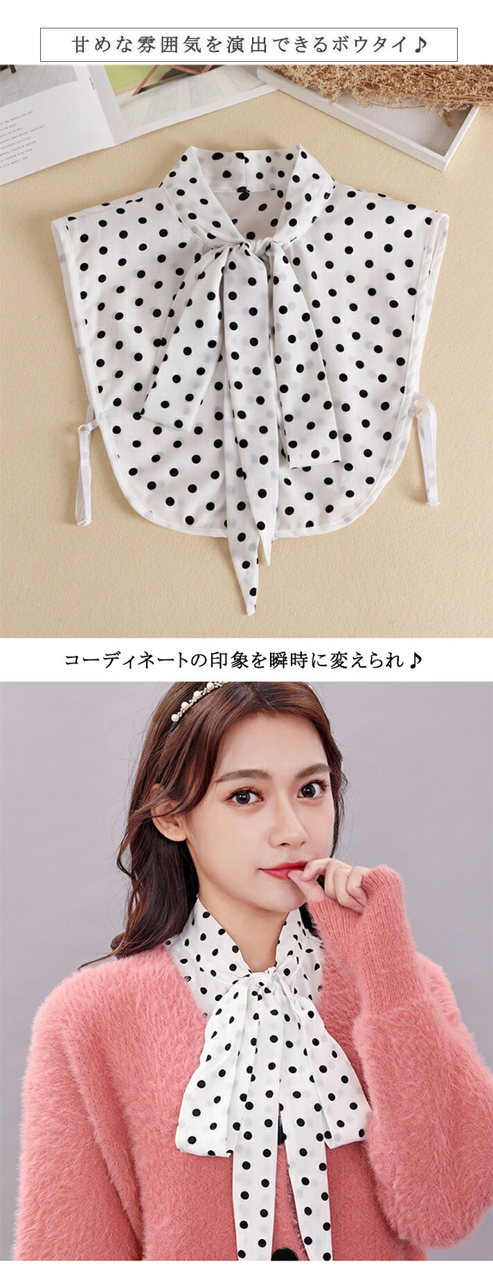 1A16 ボウタイ レギュラー付け襟 付け襟 続々登場 レギュラー ボウタイ ホワイト ブラック