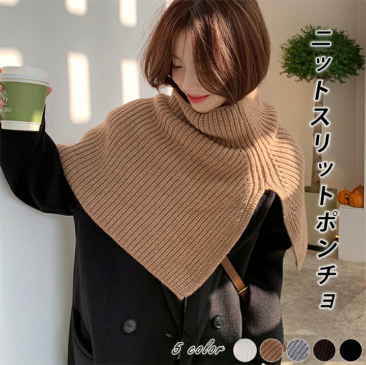 3A33 ニットスリットポンチョ 小物 マフラー スカーフ ネックウォーマー スヌード 41%Off ホワイト ブラウン グレー モカ ブラック