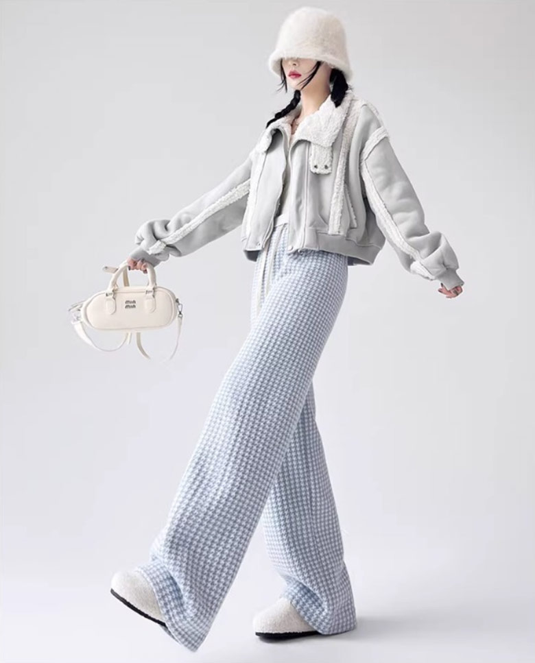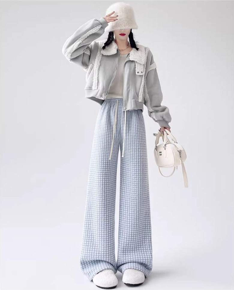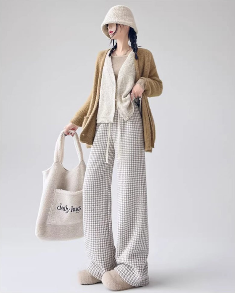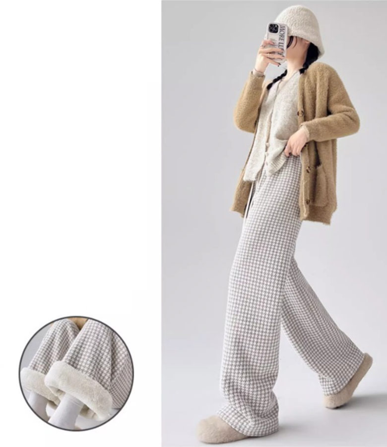 3B-2 千鳥格子柄 ワイドパンツ レ レディースファッション 44%Off ピンク グレー モカ ブルー