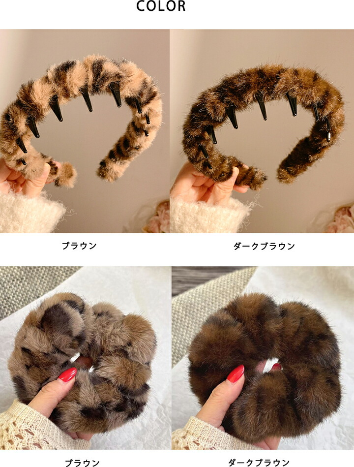 ヘアアクセサリー レディース ヒョウ柄 ジュエリー アクセサリー 特集 カチューシャ シュシュ ブラウン ダークブラウン