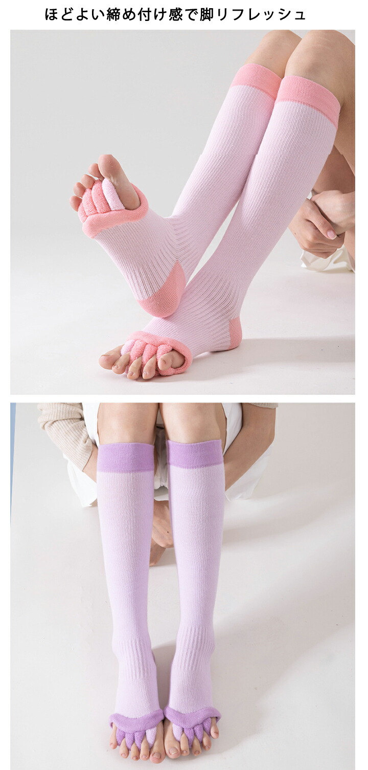 1A2 着圧ロングソックス 足指開きソ レディース 靴下 レッグウェア 靴下 豊富な品揃え ロングタイプ:ピンク ロングタイプ:パープル ロングタイプ:ブルー ロングタイプ:グレー ロングタイプ:ブラック
