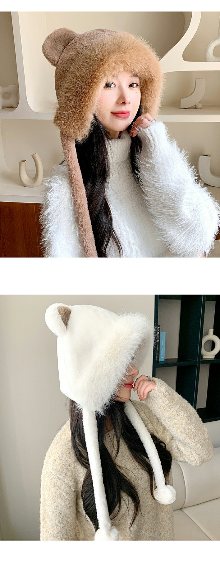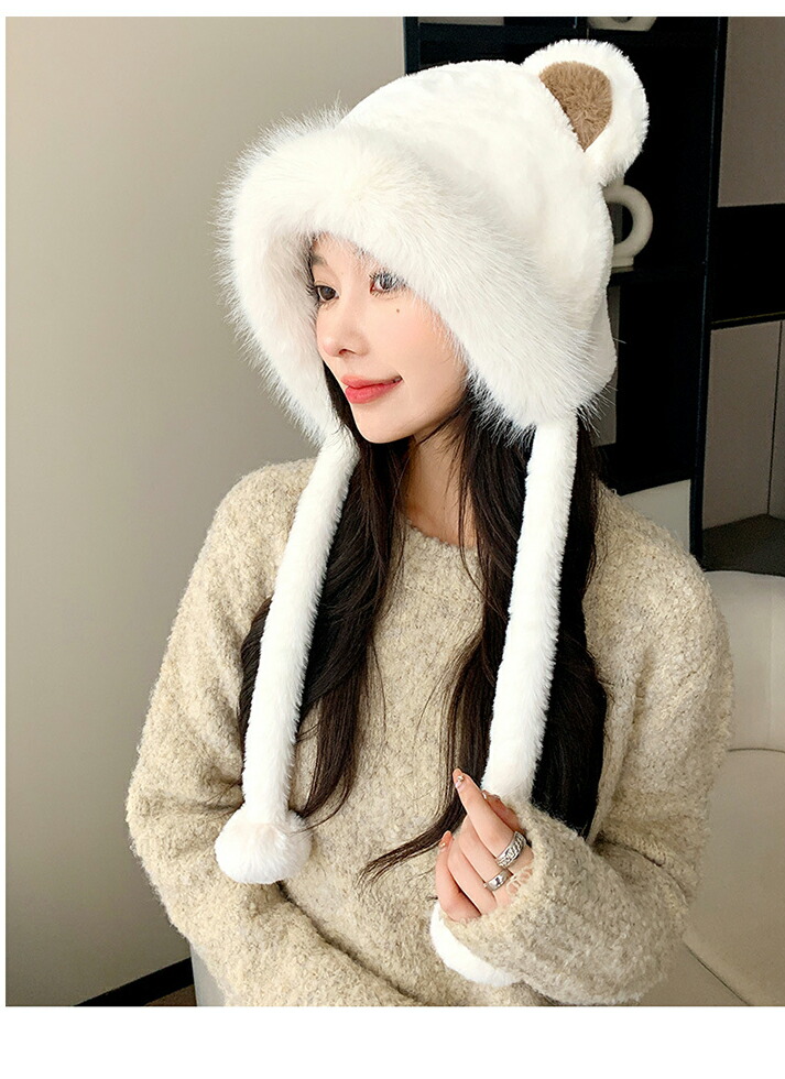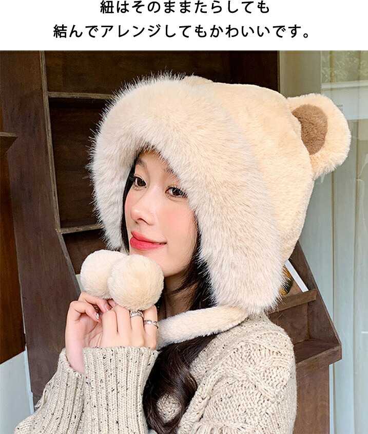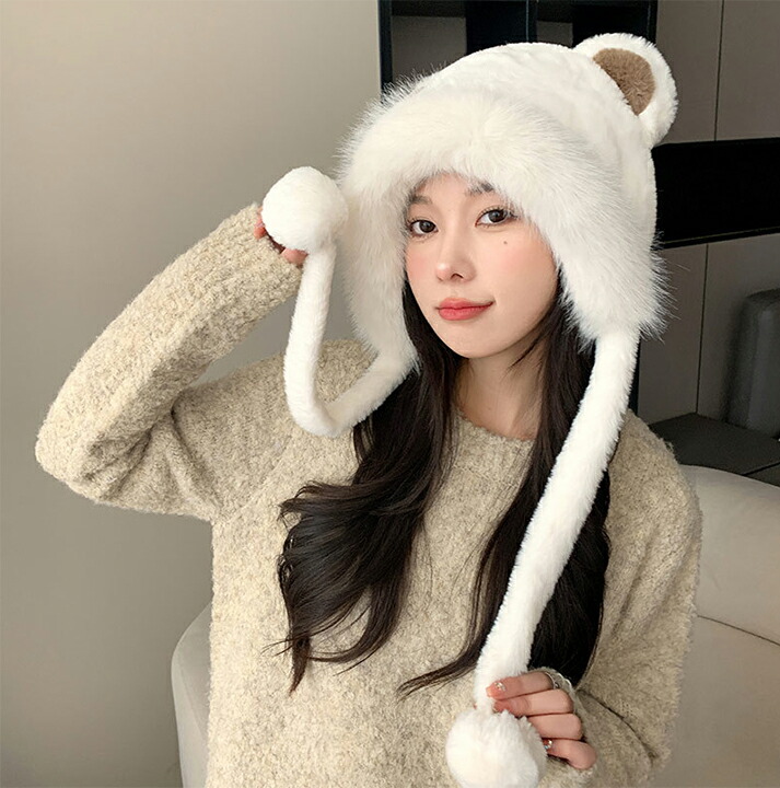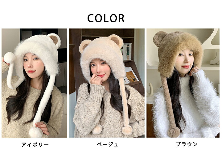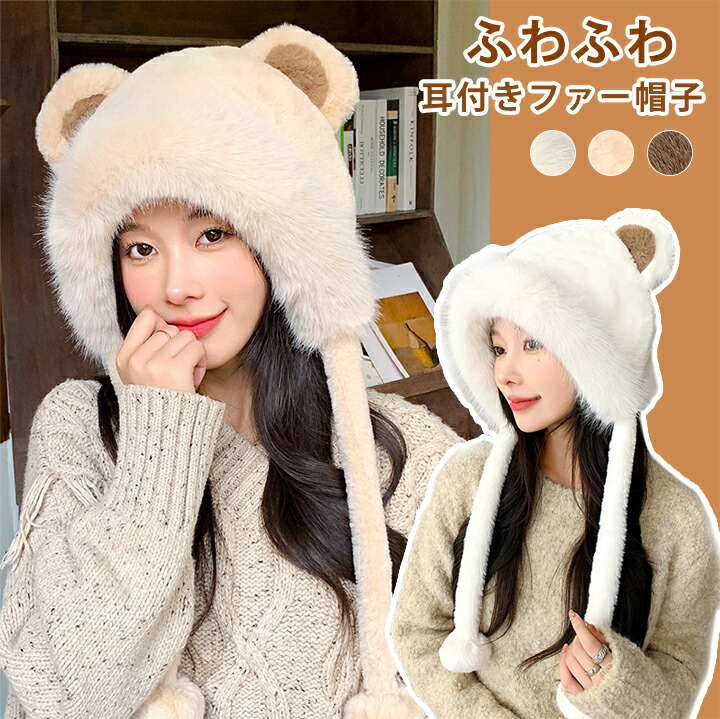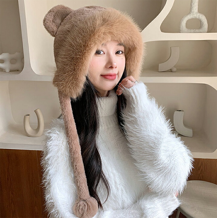 1B17 耳付きファー 帽子 小顔 ぼ バッグ 小物 ブランド雑貨 新作 ブラウン ベージュ アイボリー
