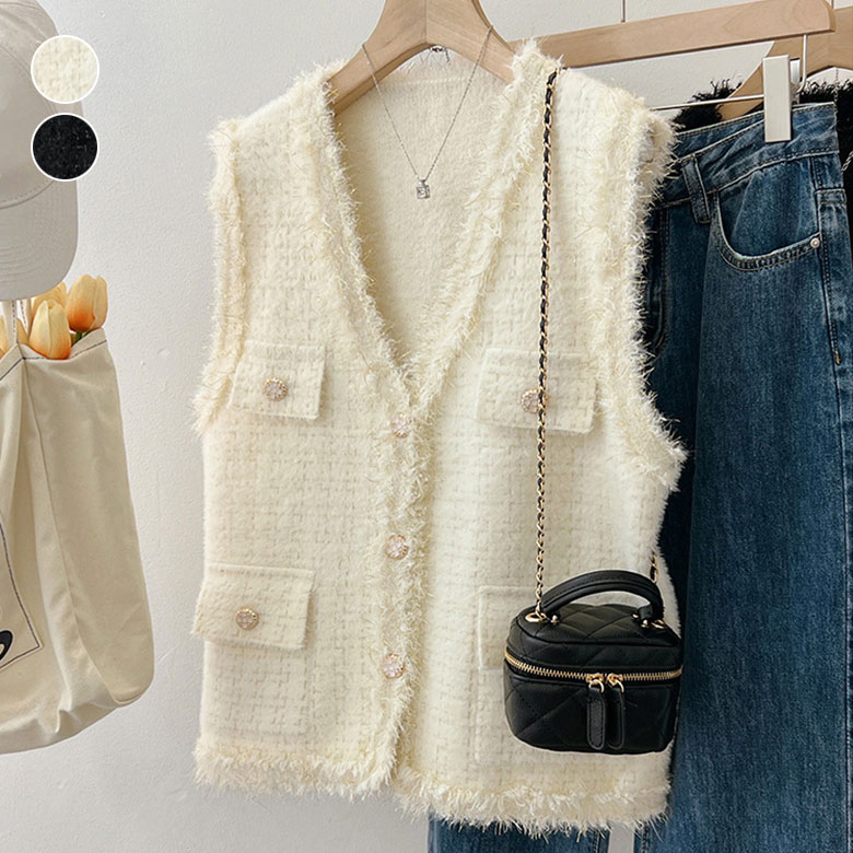 Vネック ベスト レディース ノースリ トップス ベスト お得なセール ホワイト ブラック
