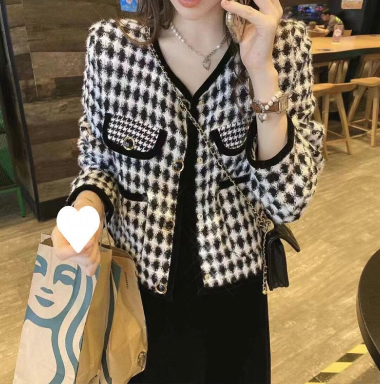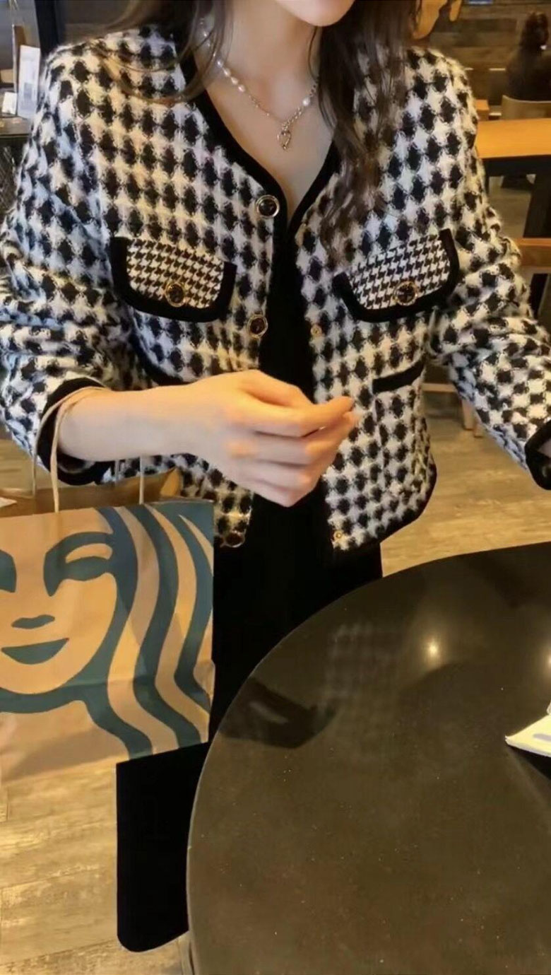 3B2 千鳥格子柄 ニット ジャケット コート ジャケット お得なセール M L XL