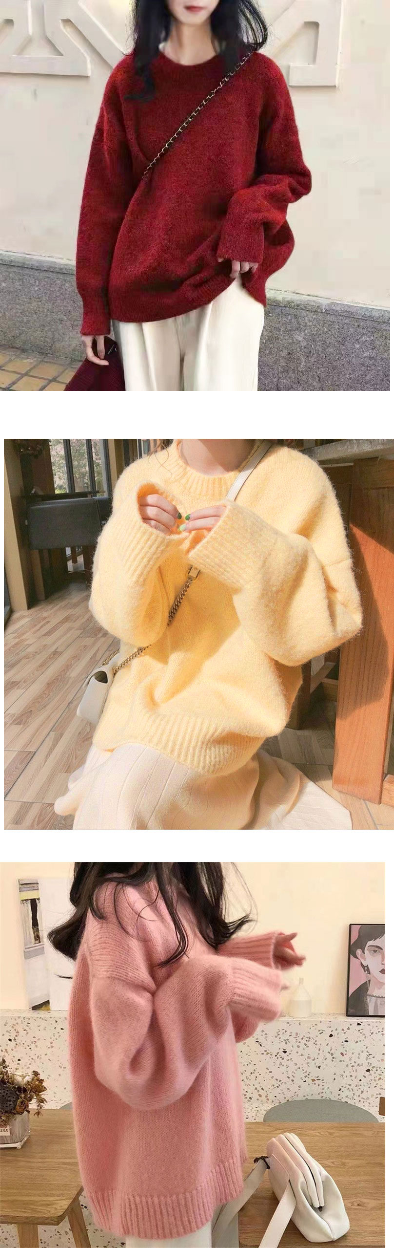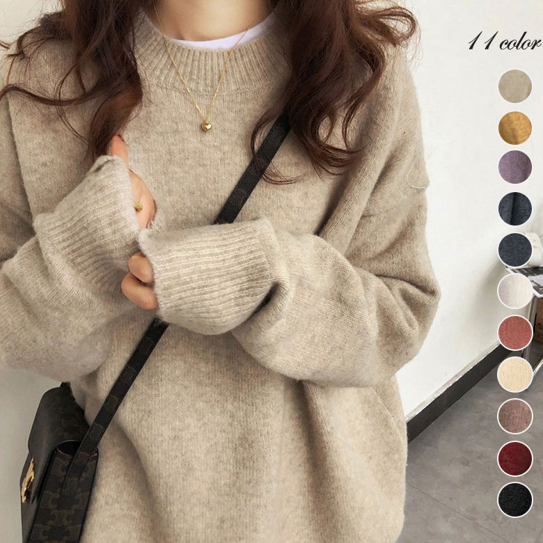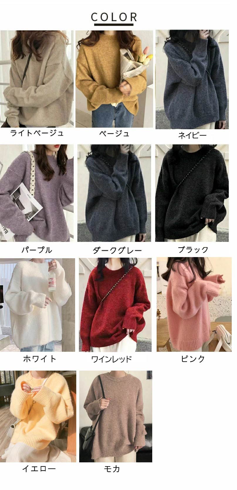 3B36 ミックスカラーオーバー ニッ レディースファッション 豊富な品揃え パープル ブラック ベージュ ライトベージュ ダークグレー ネイビー ホワイト ピンク イエロー モカ ワインレッド