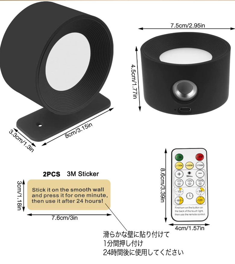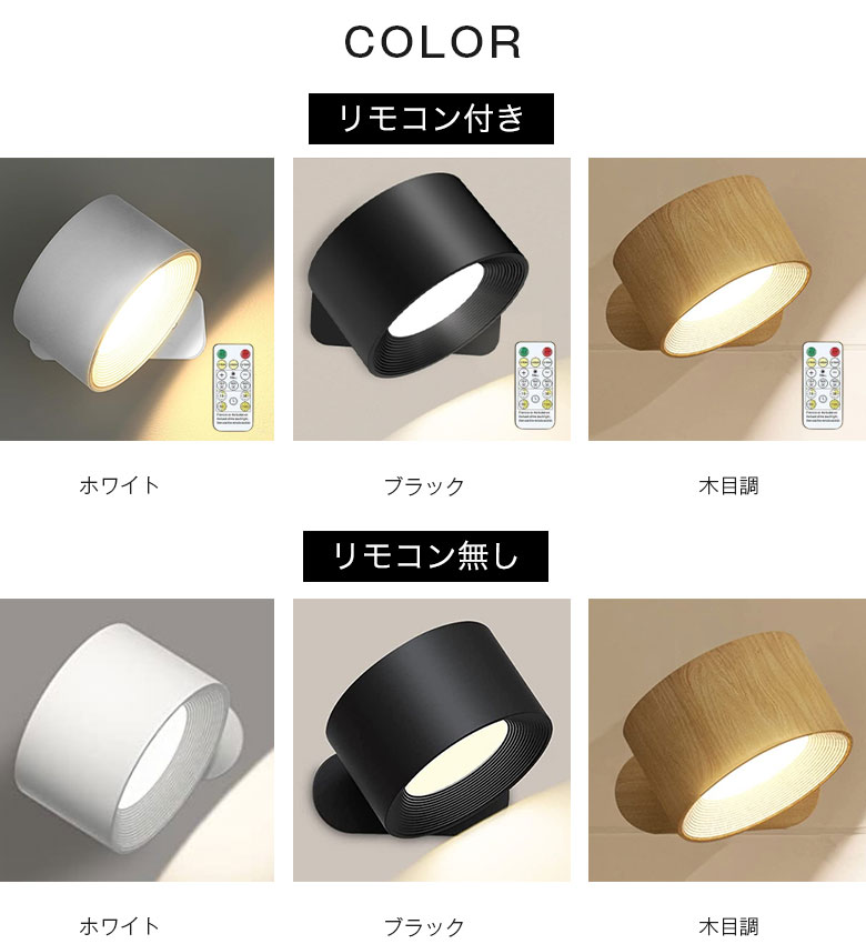 LEDライト ウォールライト USB充 リモコン付き リモコン無し ホワイト ブラック 木目調
