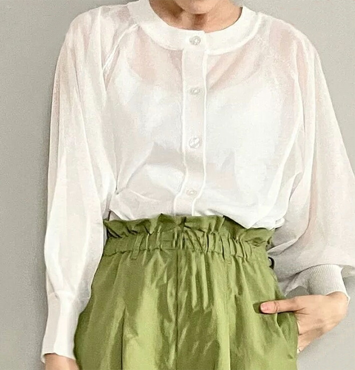 シフォンブラウス シアーブラウス ボリューム袖