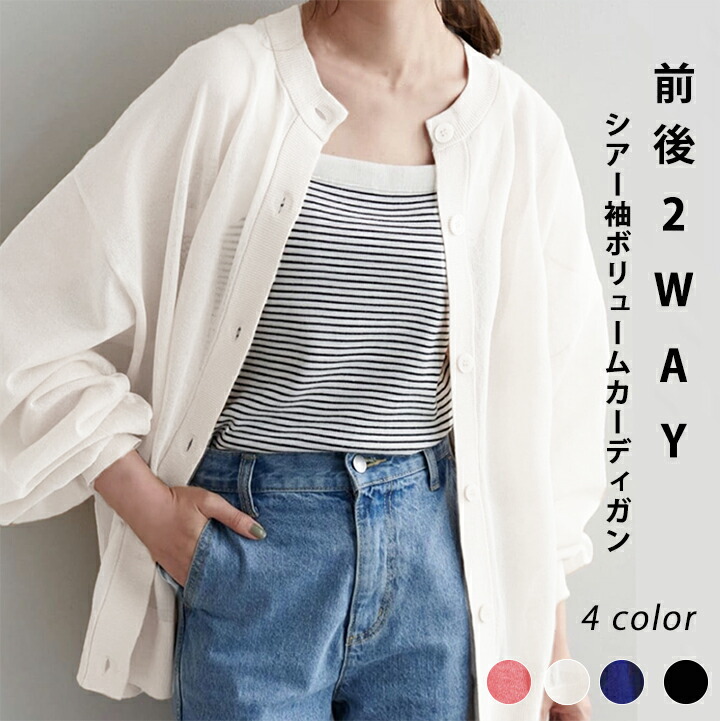 2A10 シアー前後2WAYカーディガ レディースファッション 特集 ブラック ホワイト コーラルピンク ネイビー