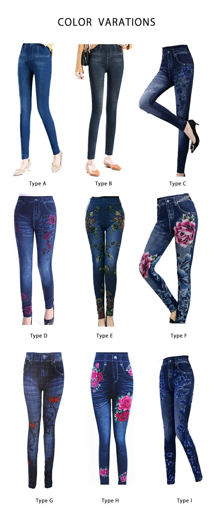 デニム風レギンスレディース 9タイプ レディース 靴下 レッグウェア スパッツ レギンス お買い得 通常タイプ 裏起毛タイプ type A type B type C type D type E type F type G type H type I