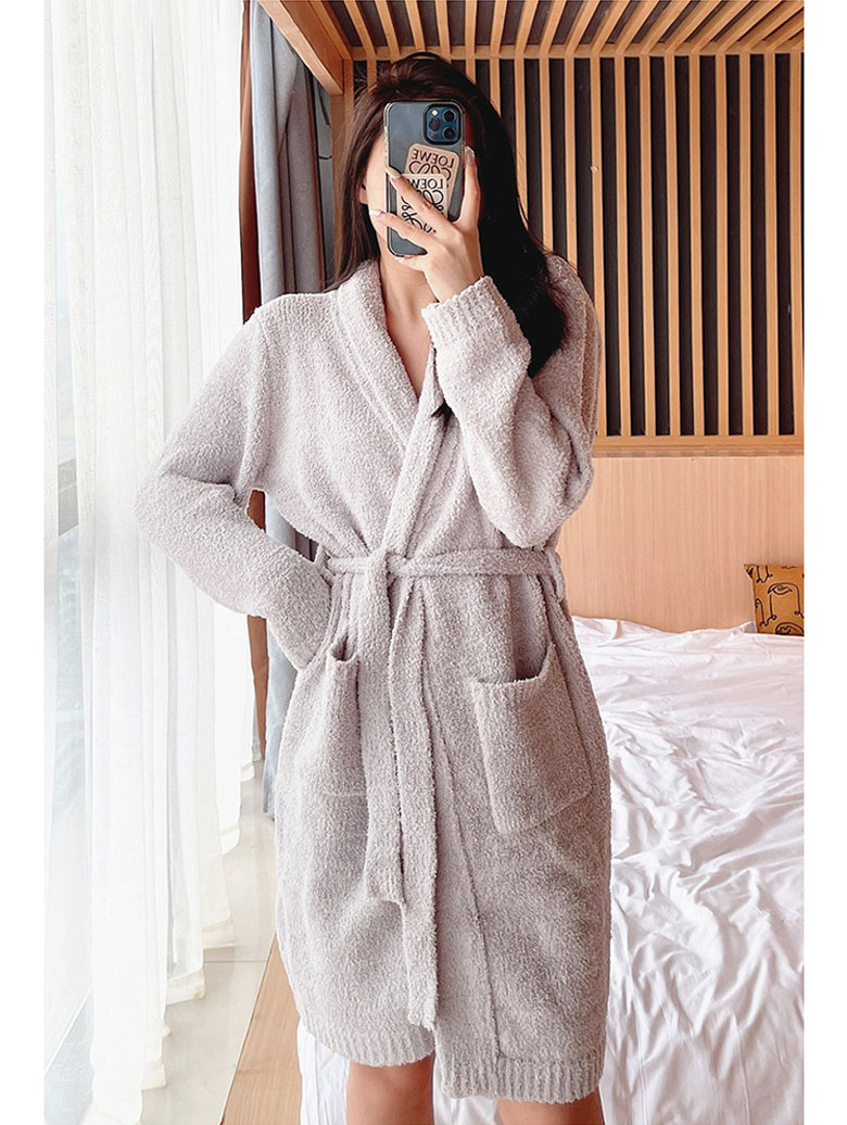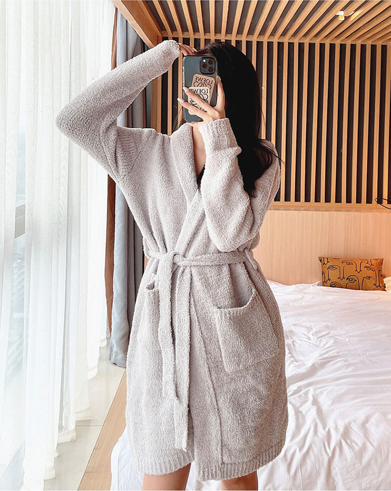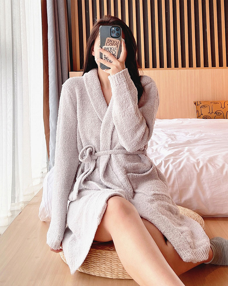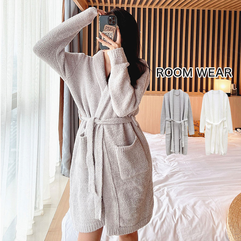 もこもこ ガウン ルームウェア レディ インナー 下着 ナイトウエア 新作 グレー ホワイト