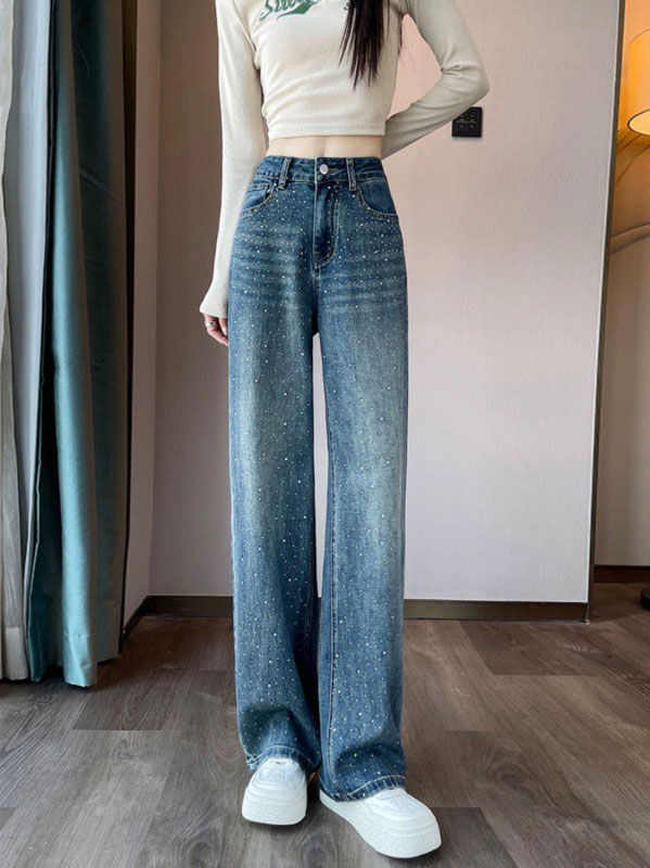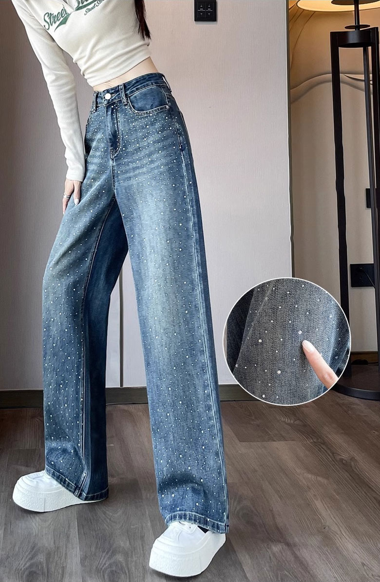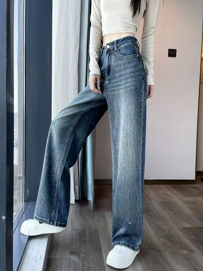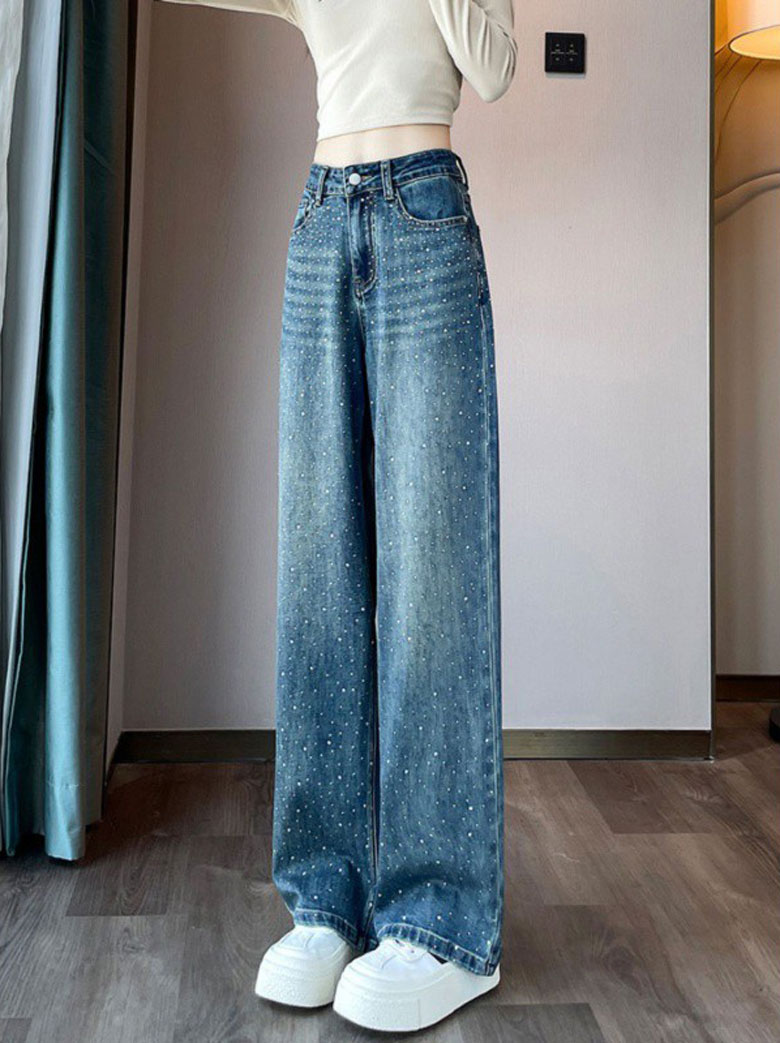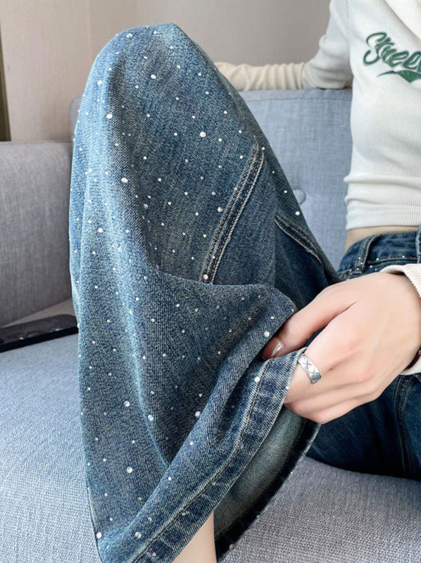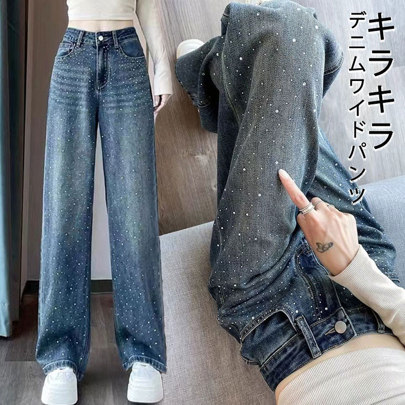 2A44ラインストーン デニム ワイド レディースファッション 割引 S M L XL 2XL