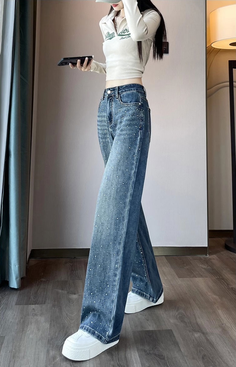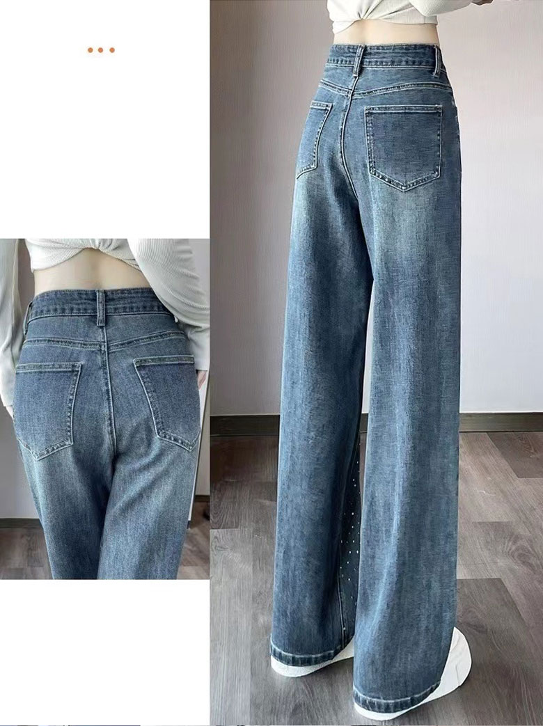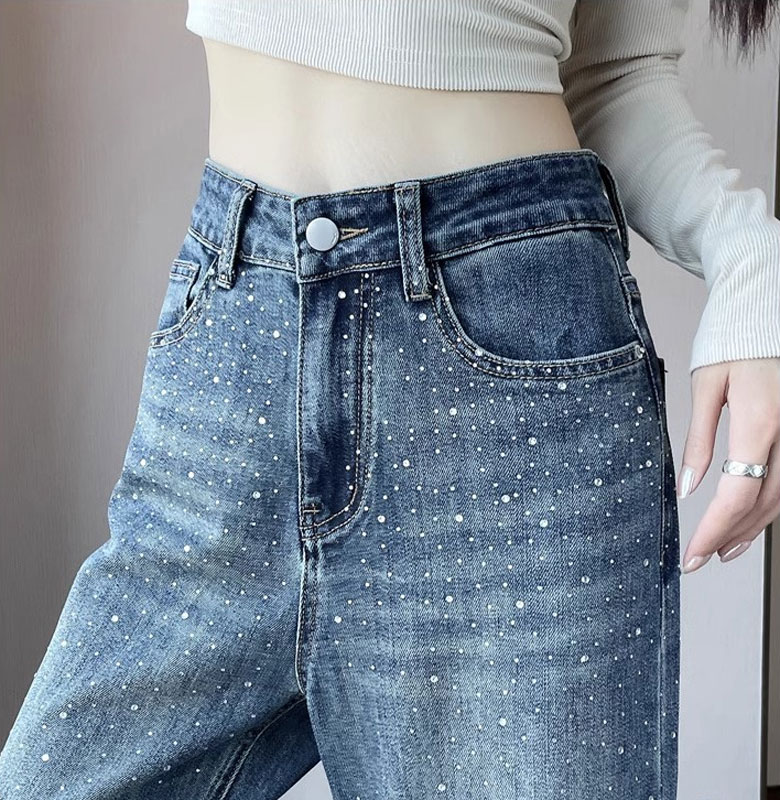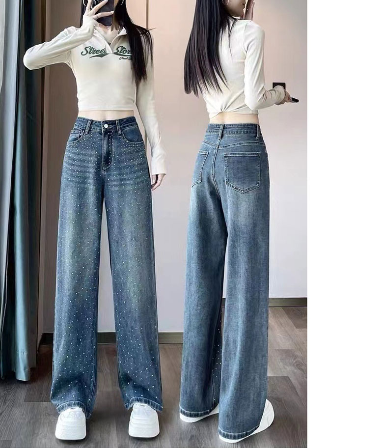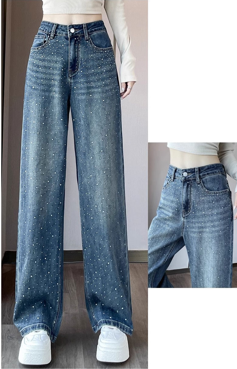 2A44ラインストーン デニム ワイド レディースファッション 割引 S M L XL 2XL