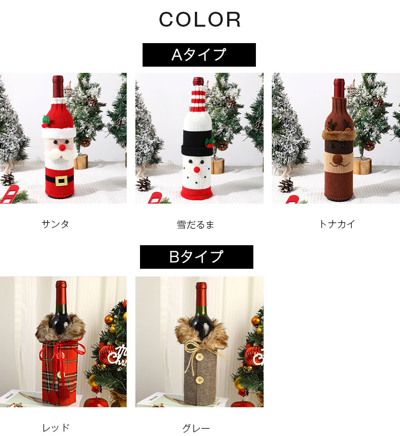 ボトルカバー ワインボトルカバー クリ キッチン用品 食器 調理器具 特集 Aタイプ:サンタ Aタイプ:雪だるま Aタイプ:トナカイ Bタイプ:レッド Bタイプ:グレー