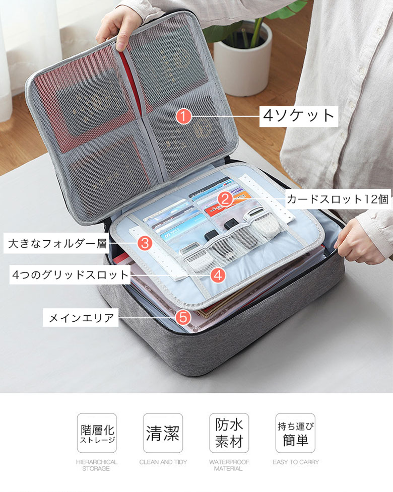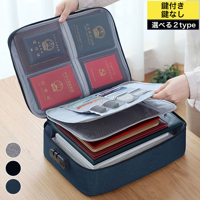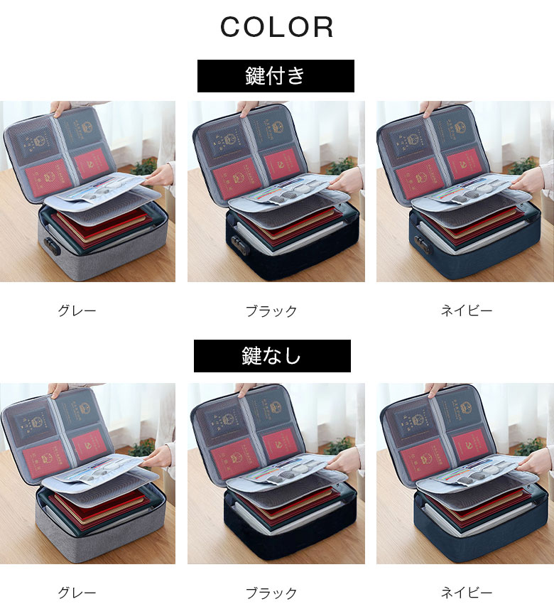 大容量 書類 収納ボックス 多収納 カ 旅行用品 トラベルポーチ パッキングオーガナイザー 通販 鍵付き 鍵無し グレー ブラック ネイビー
