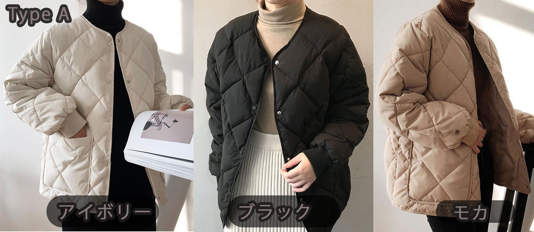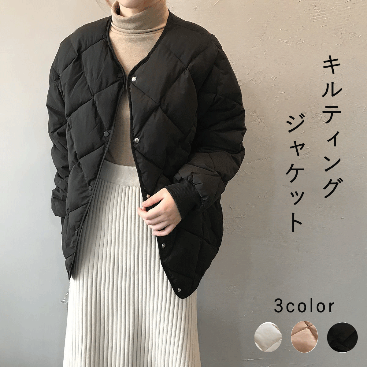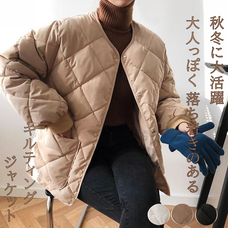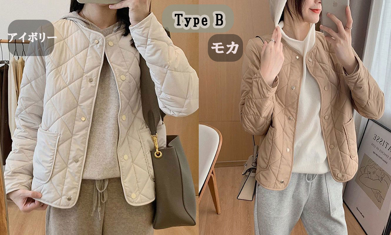 3B30 キルティング ジャケット 中 レディースファッション お得なセール アイボリー モカ ブラック