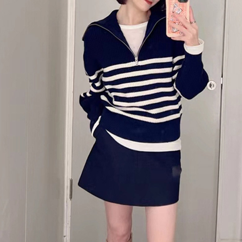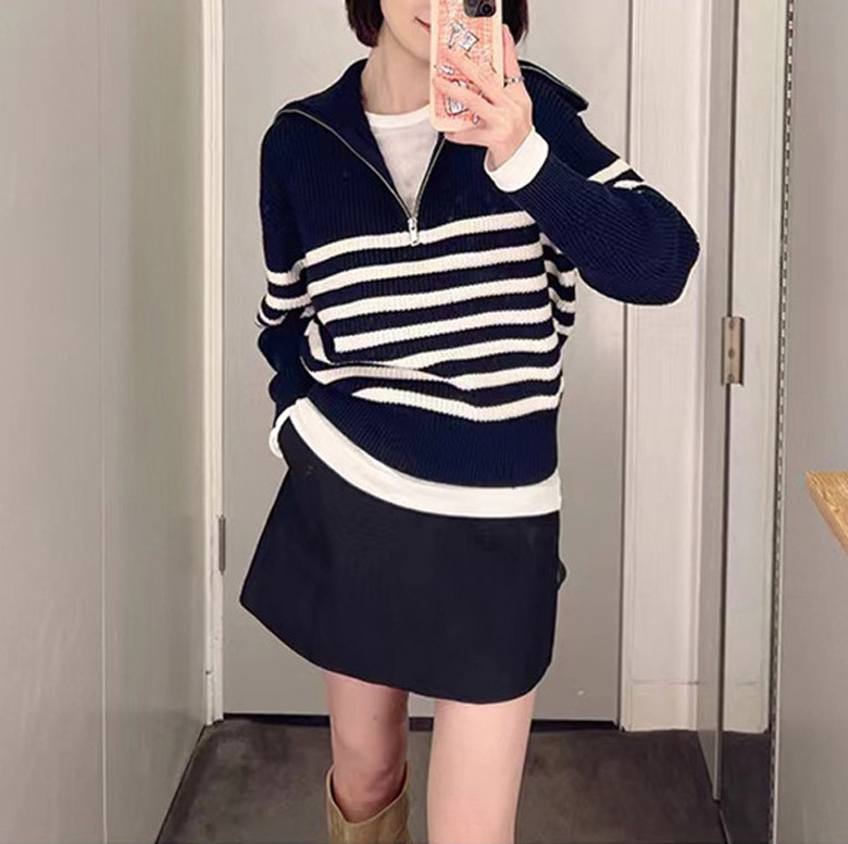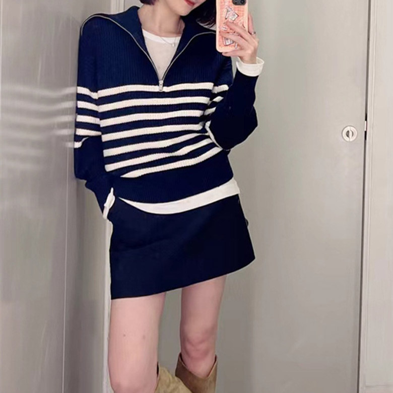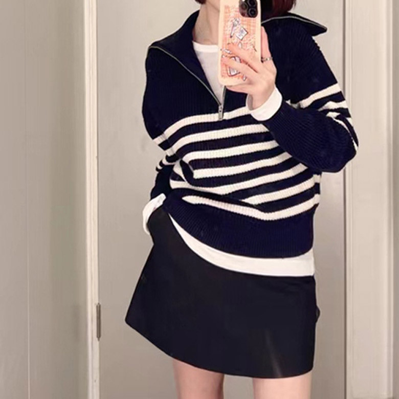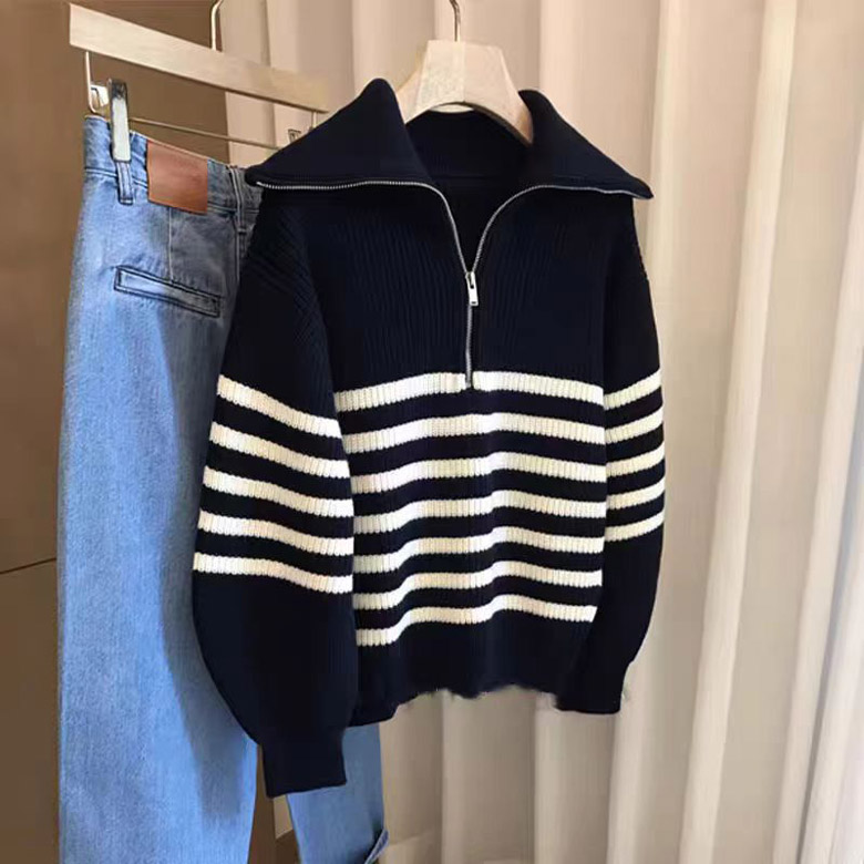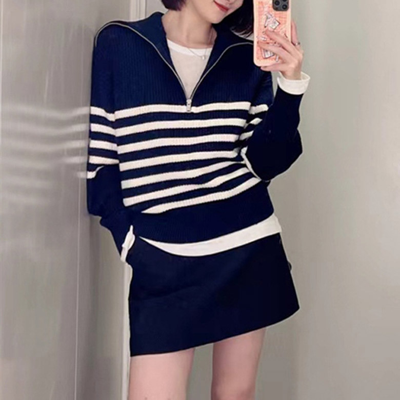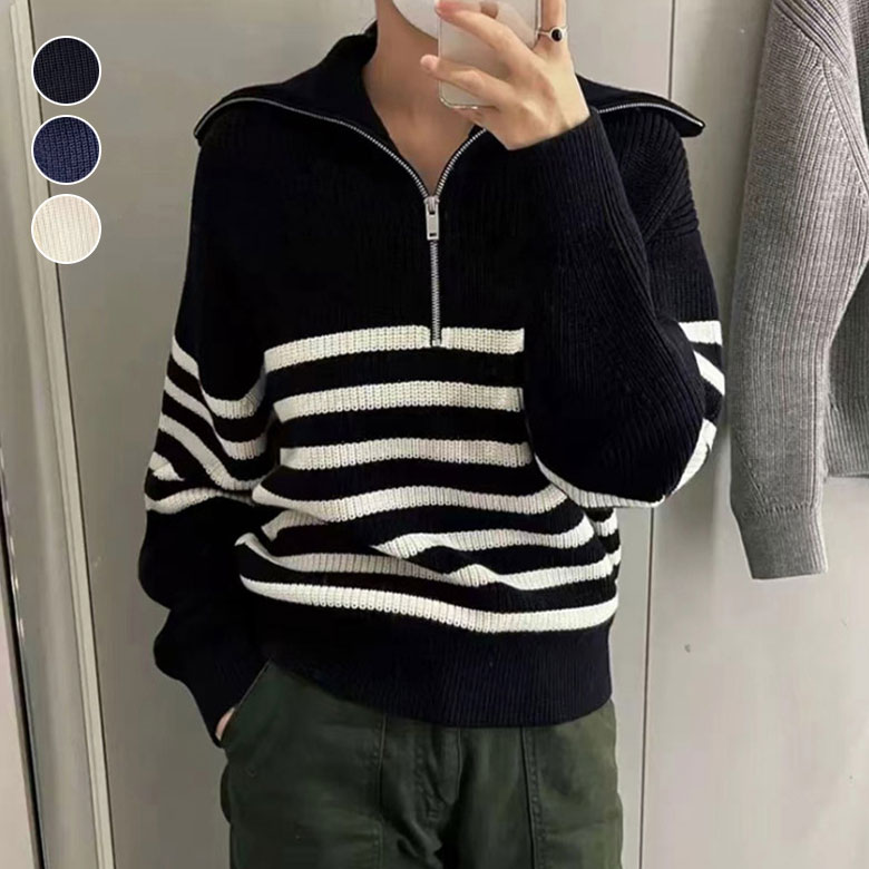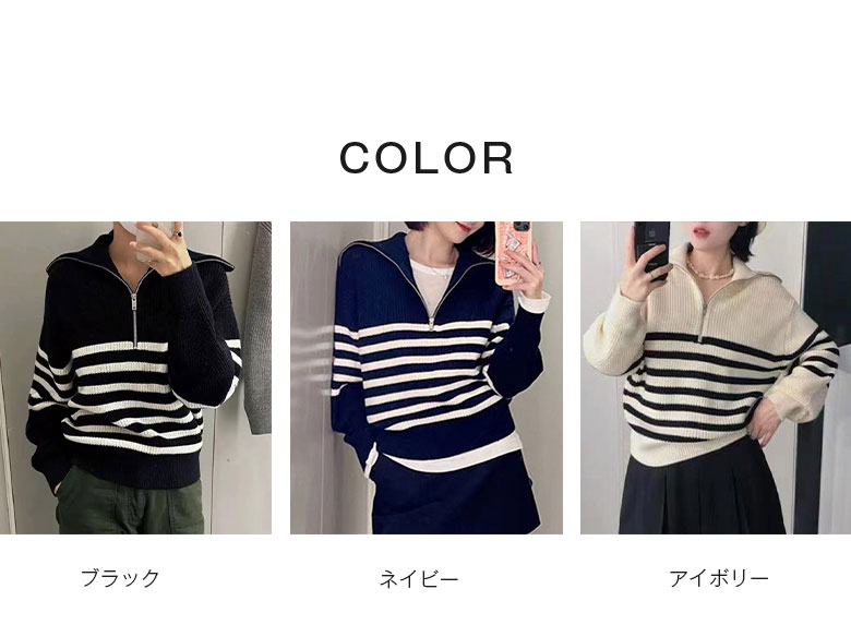 3B44 ポロカラー ニット セーター トップス ニット セーター セーター お得なセール ブラック ネイビー アイボリー