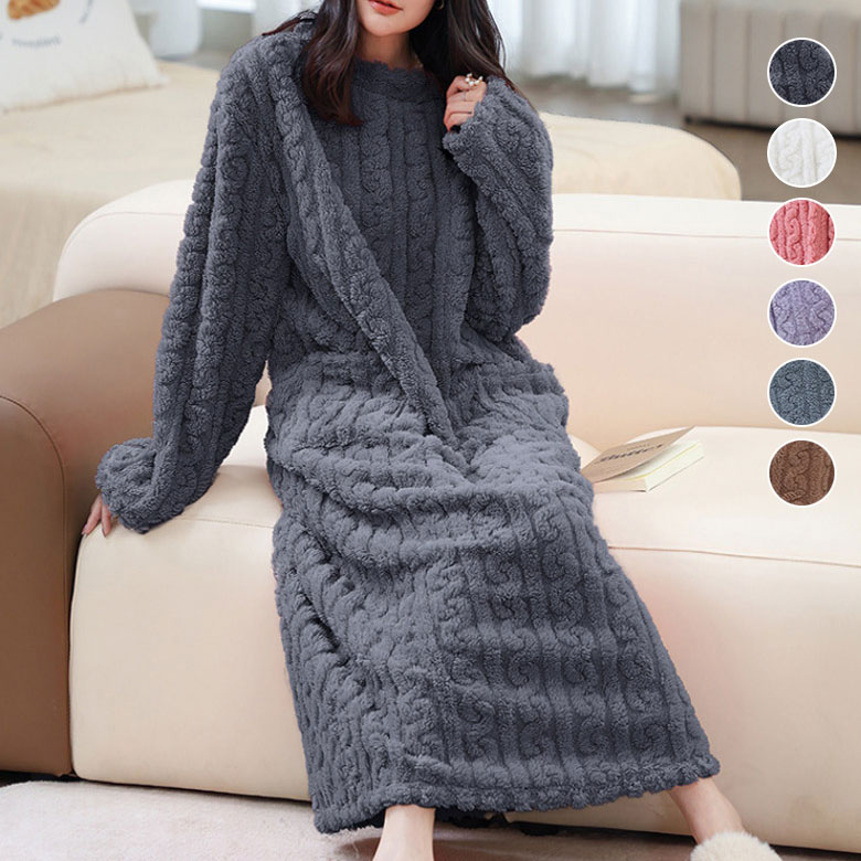 3B19 3B-OK ふわふわ もこも レディース ナイトウェア ルームウェア ナイトガウン 新作 フリーサイズ 大きいサイズ チャコール アイボリー ローズ パープル スモークブルー ブラウン