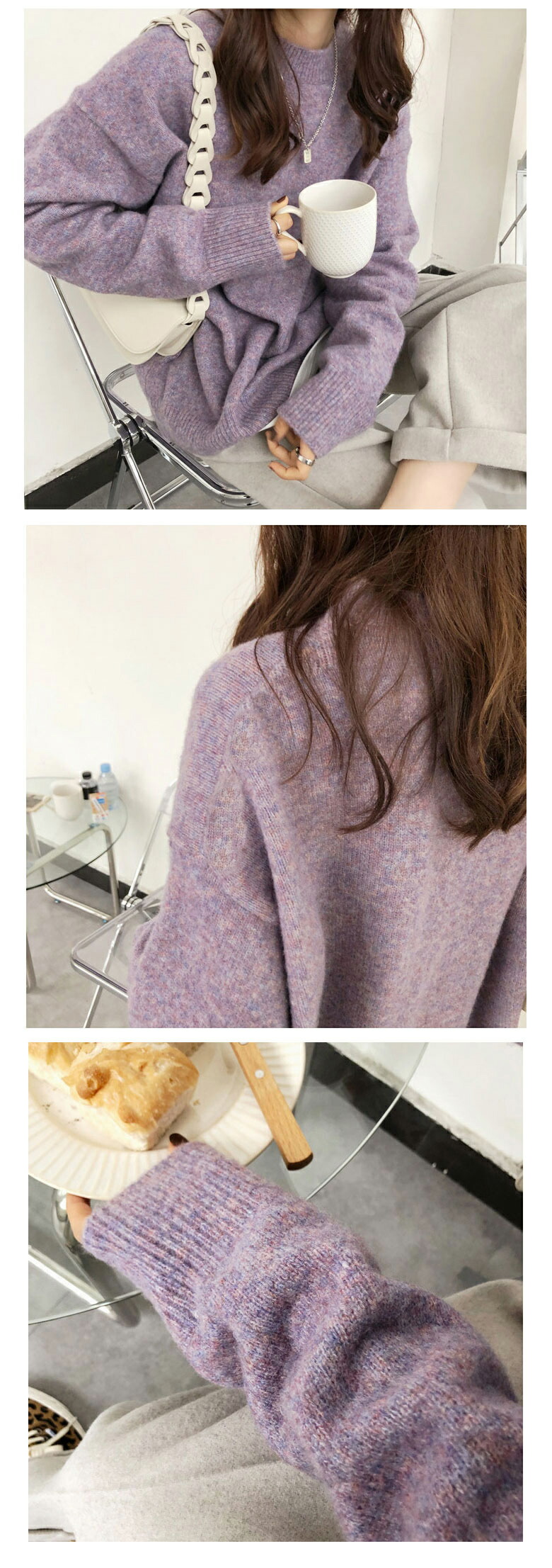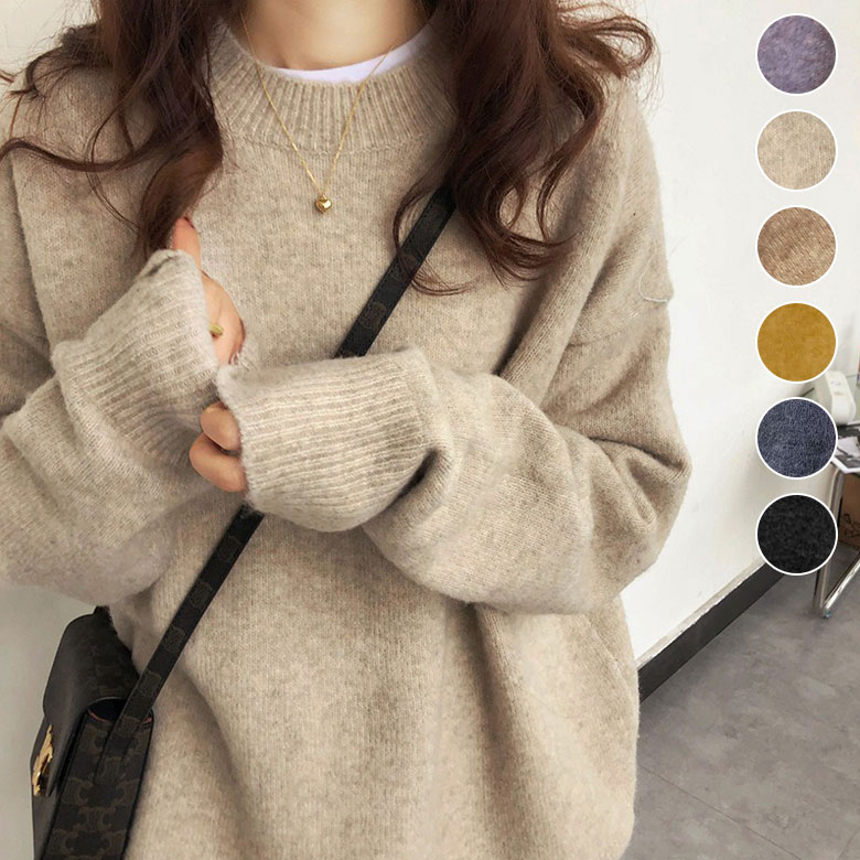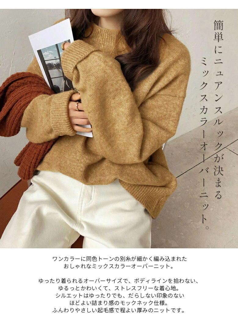 3B36 ミックスカラーオーバー ニッ トップス ニット セーター セーター 豊富な品揃え パープル ブラック ベージュ ライトベージュ ダークグレー ネイビー