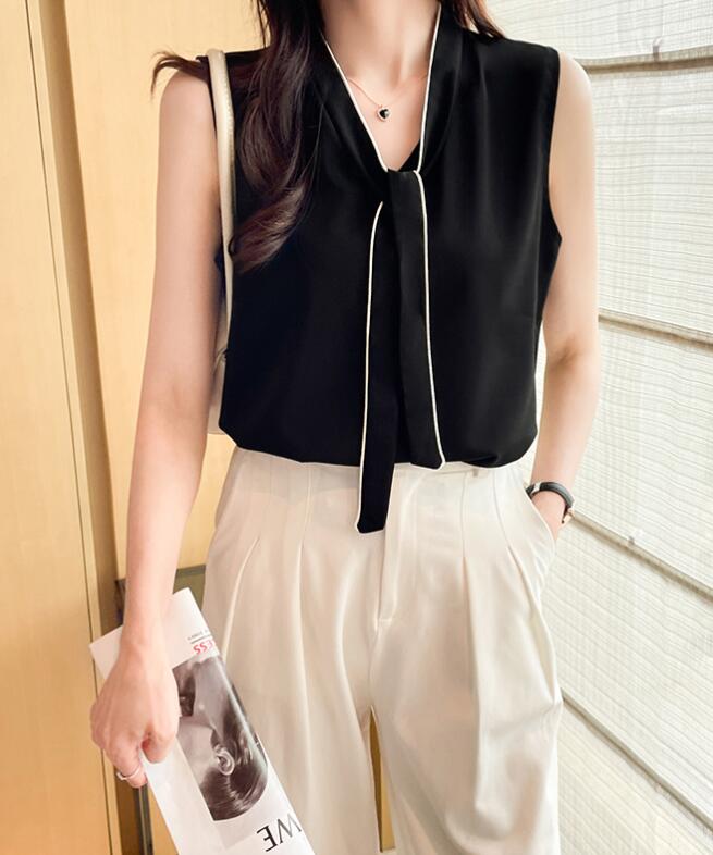 シアースリーブ ドッキングシャツ ボウタイシャツブラウス
