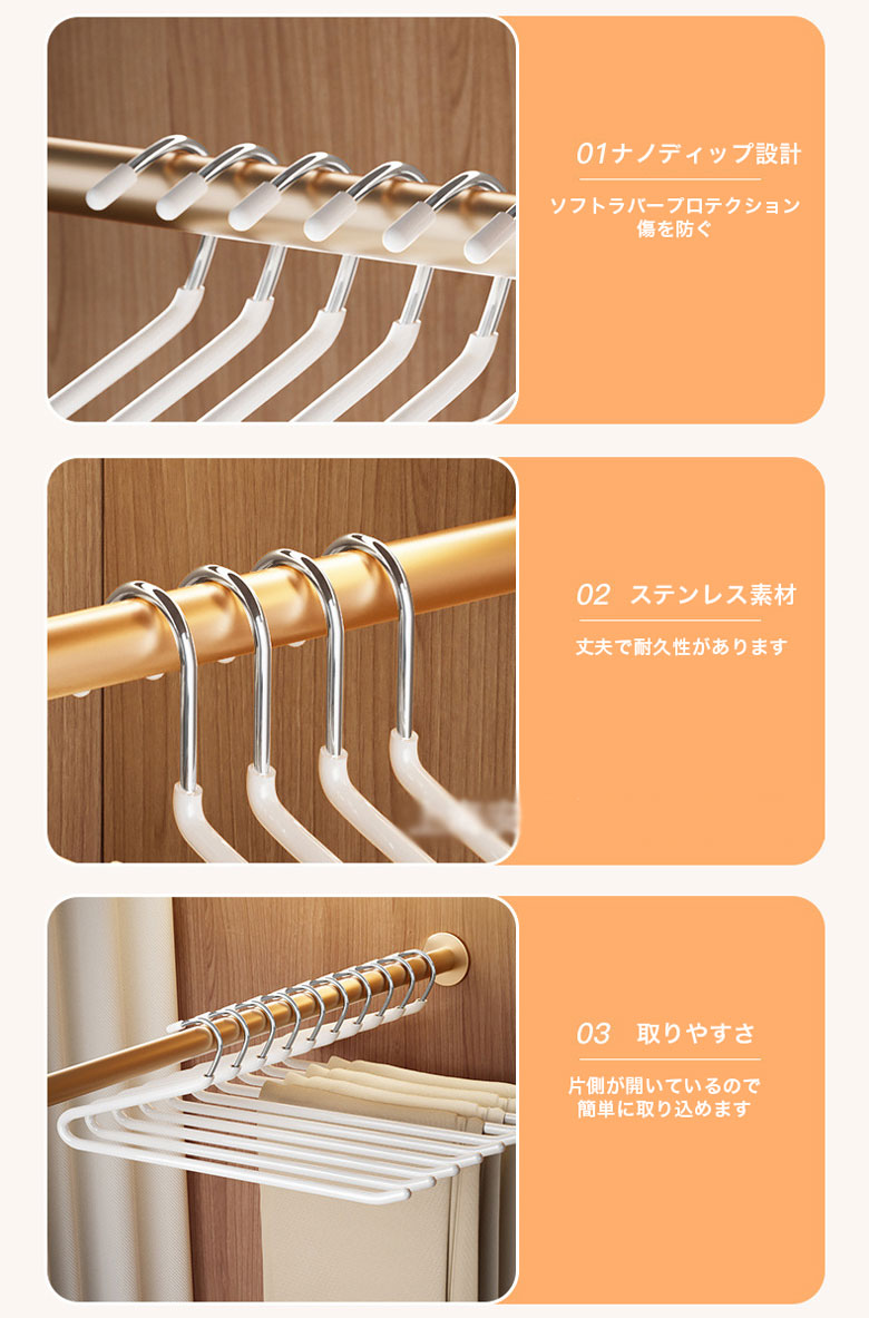 シームレス 多機能 ハンガー 滑らない 5本 10本 20本 30本 Aタイプ:ホワイト Bタイプ:ホワイト