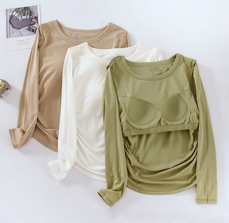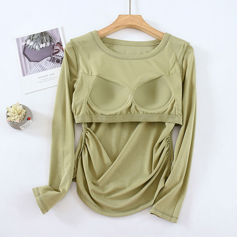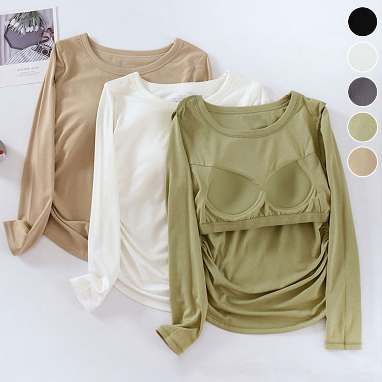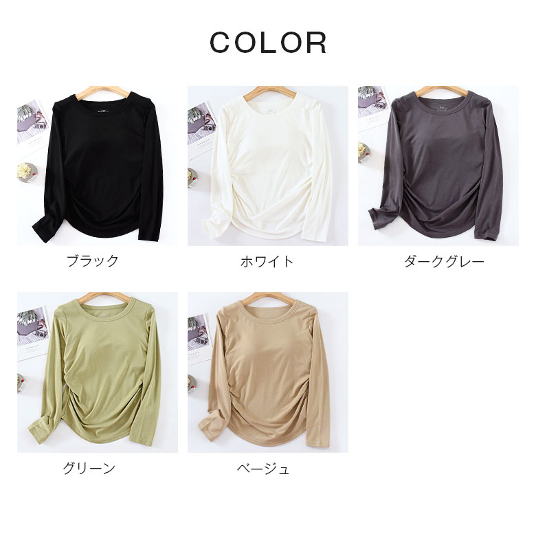 2A22 パット付き 長袖 Tシャツ レディースファッション 通販 M L XL ブラック ホワイト ダークグレー グリーン ベージュ